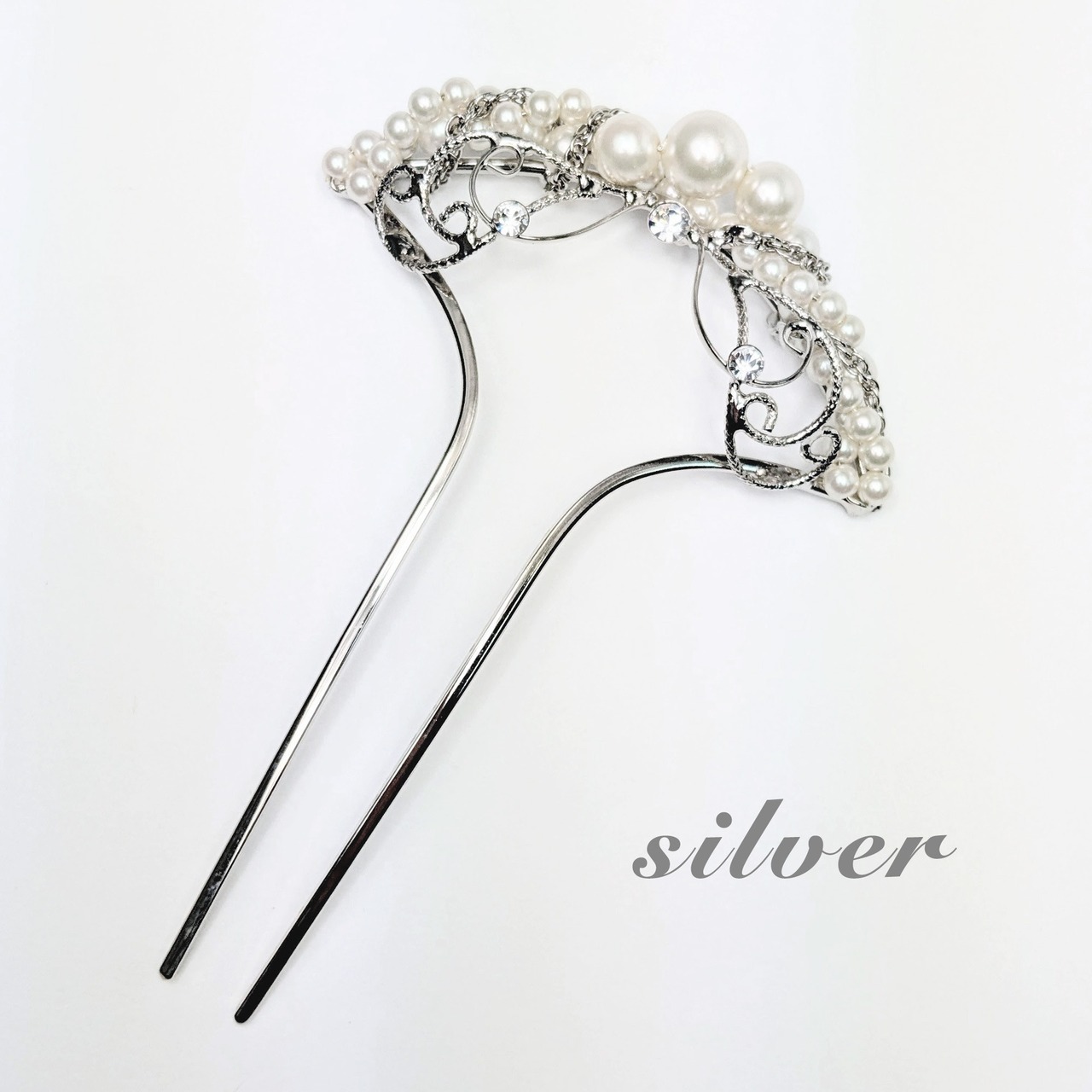 華しおり 和洋ミックス 二本差し パールかんざし GOLD/SILVER