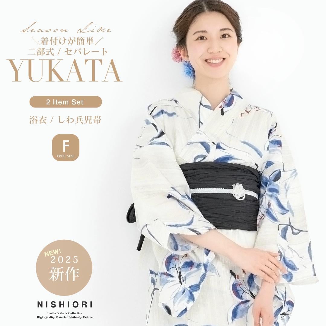 【着付けが簡単】二部式セパレート浴衣セット しわ兵児帯 レディース 2点セット km30
