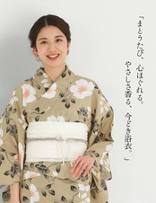 着付けが簡単な《二部式タイプ》のセパレート浴衣に、柔らかい質感のしわ兵児帯を合わせた2点セットです。