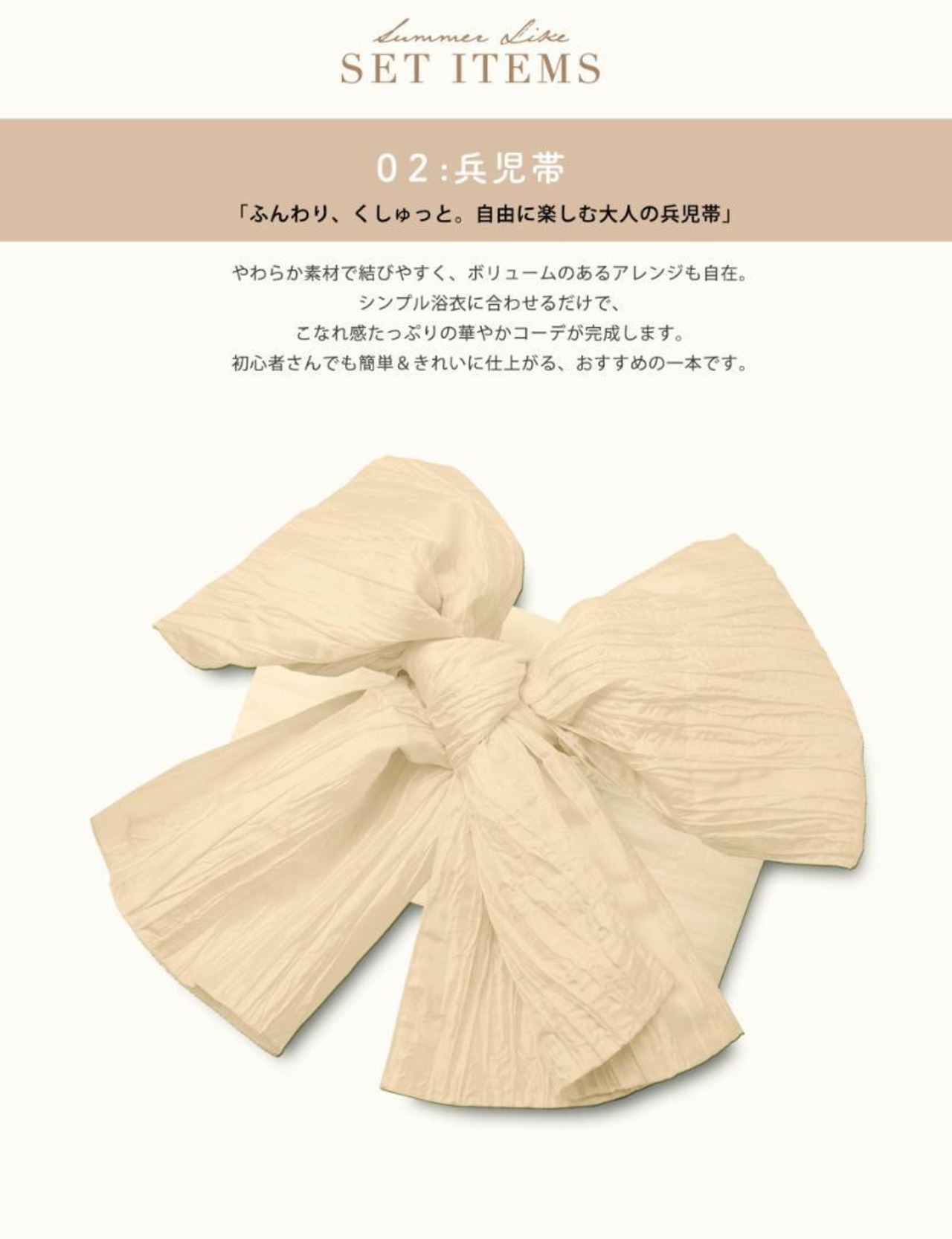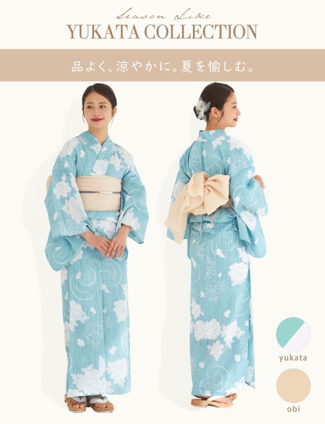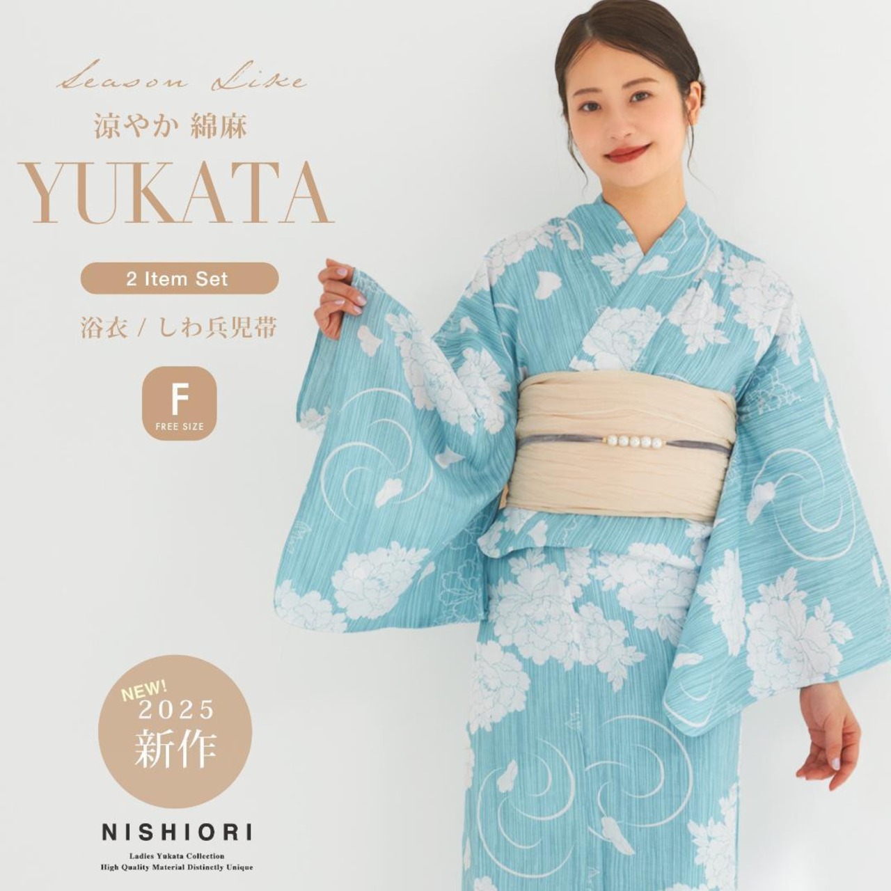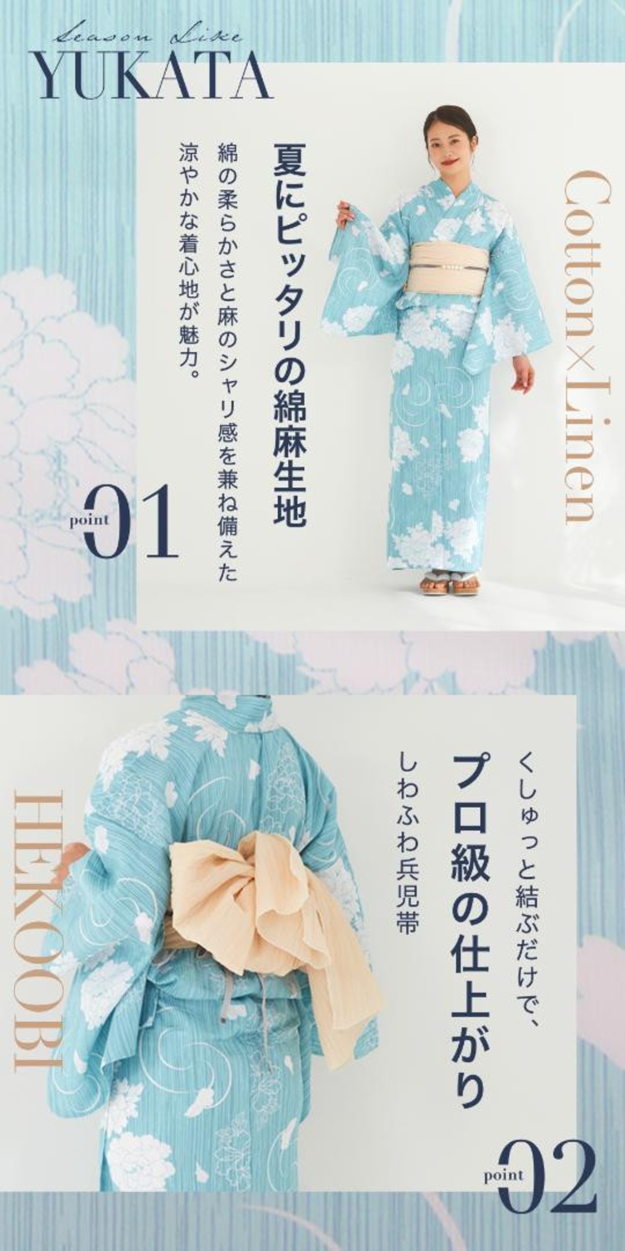 自然な風合いが魅力の綿麻素材を使用した、夏にぴったりの浴衣セットです。