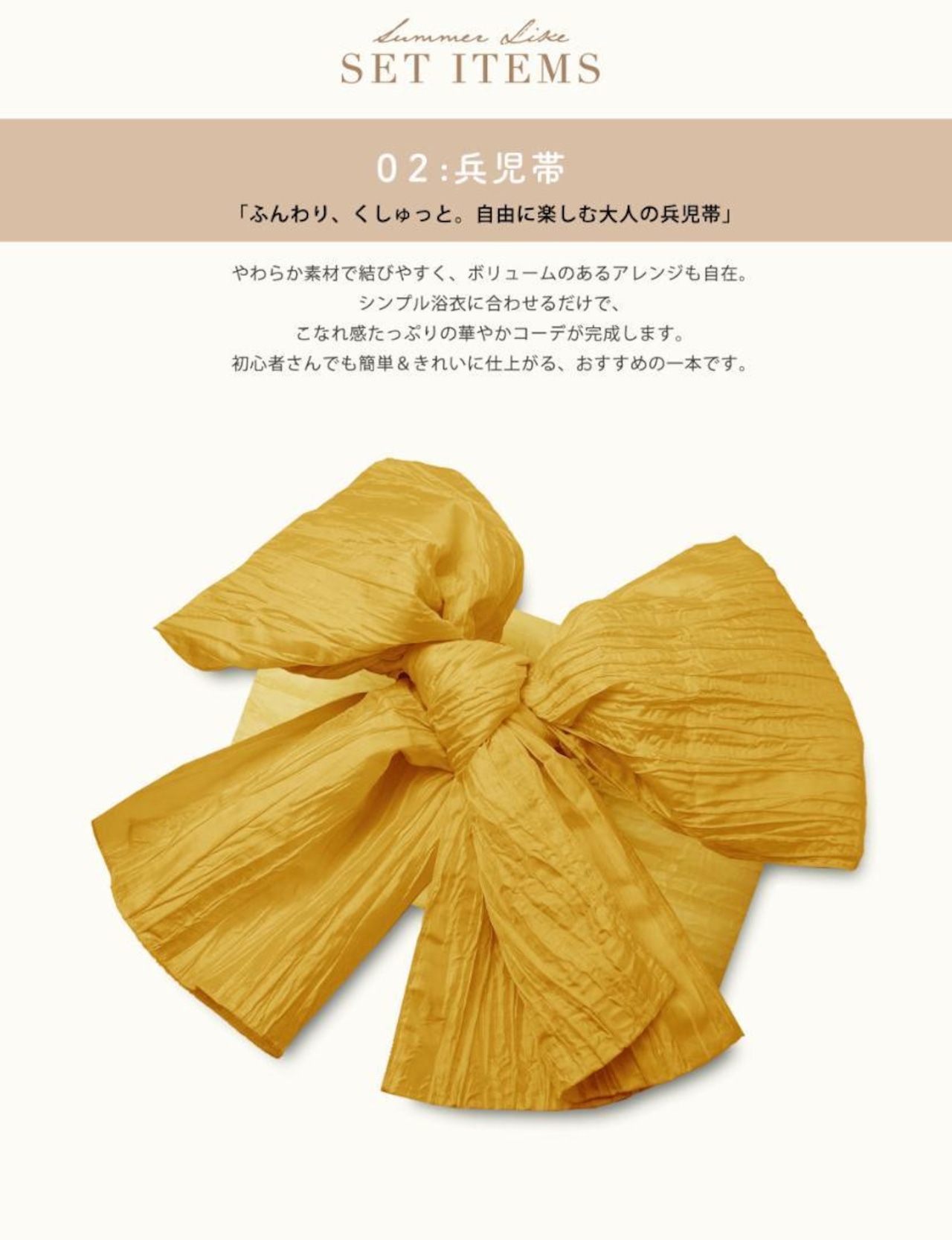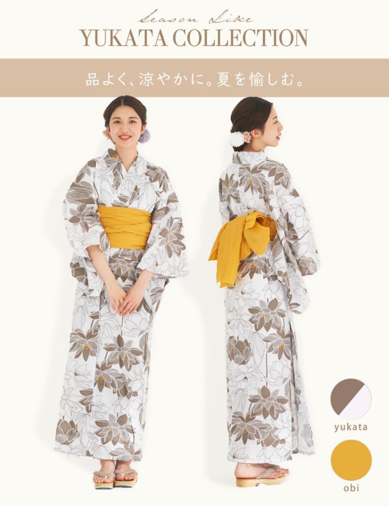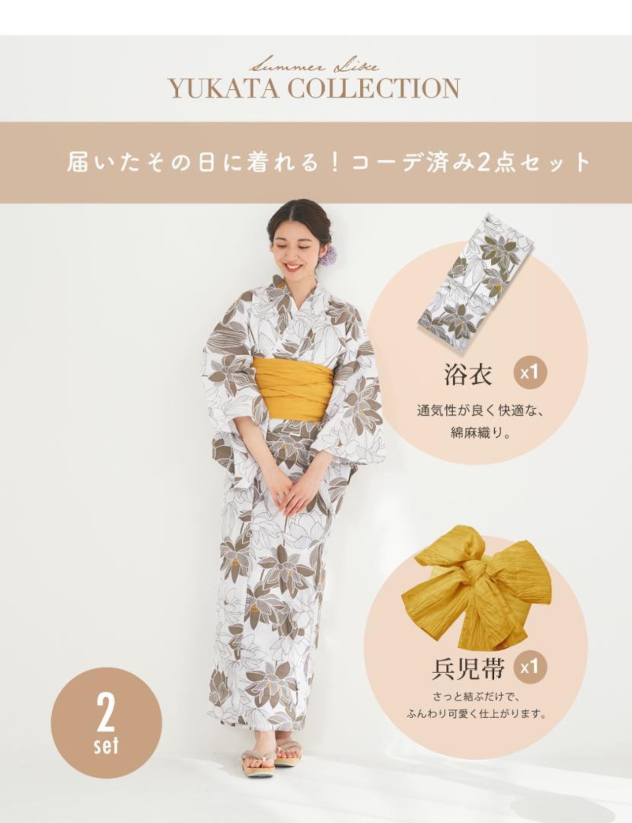 自然な風合いが魅力の綿麻素材を使用した、夏にぴったりの浴衣セットです。