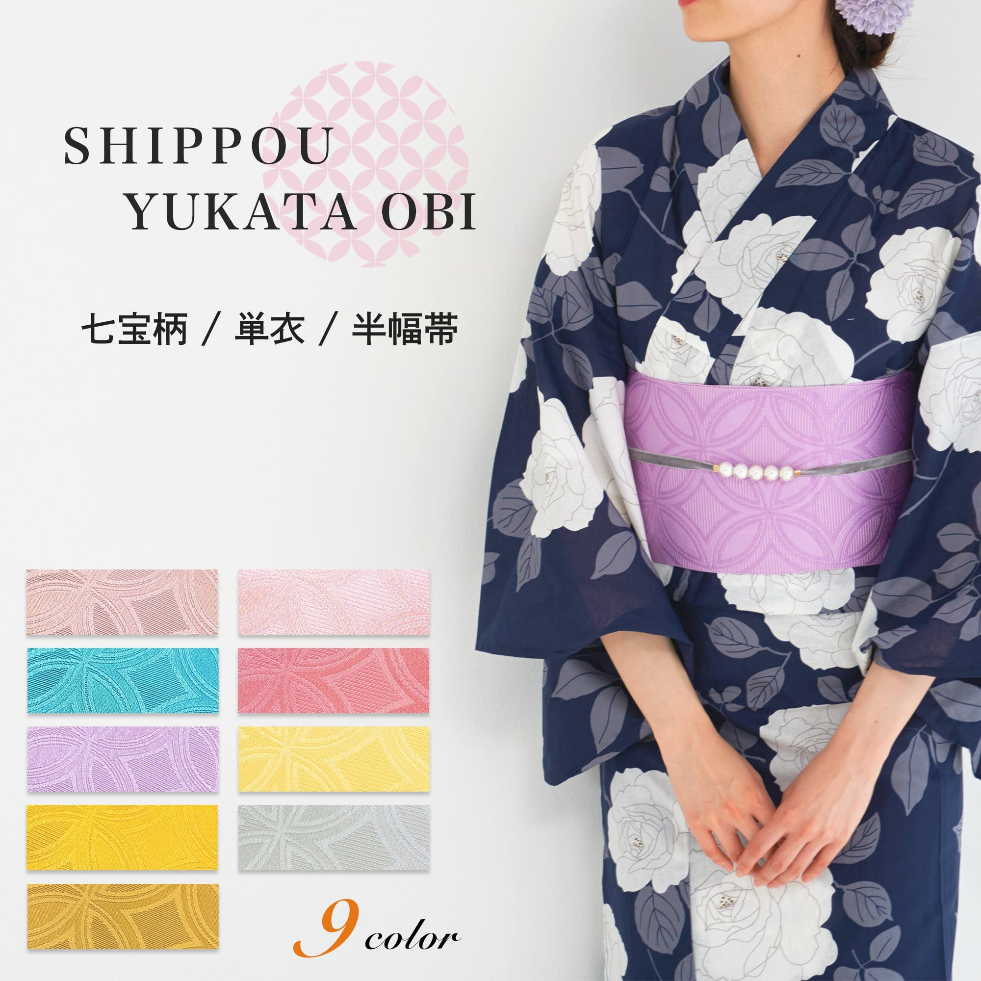 伝統的な七宝柄をあしらった、上品で華やかな半幅帯。