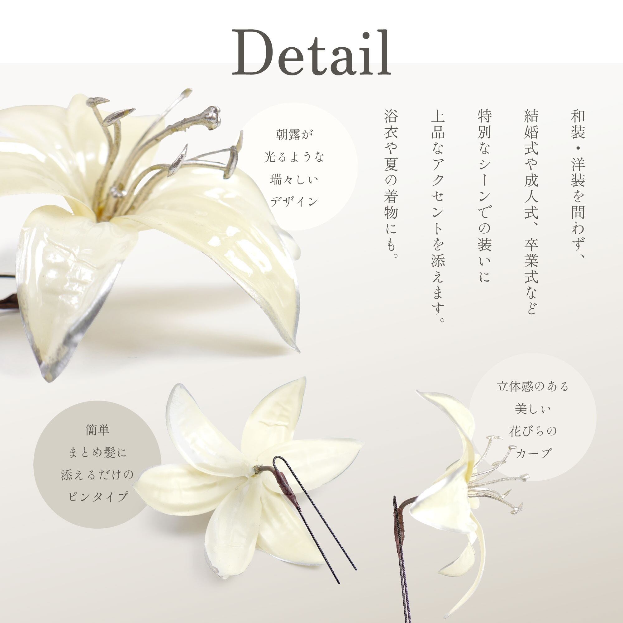 繊細な百合の花をモチーフにした、透明感あふれるヘアアクセサリー。