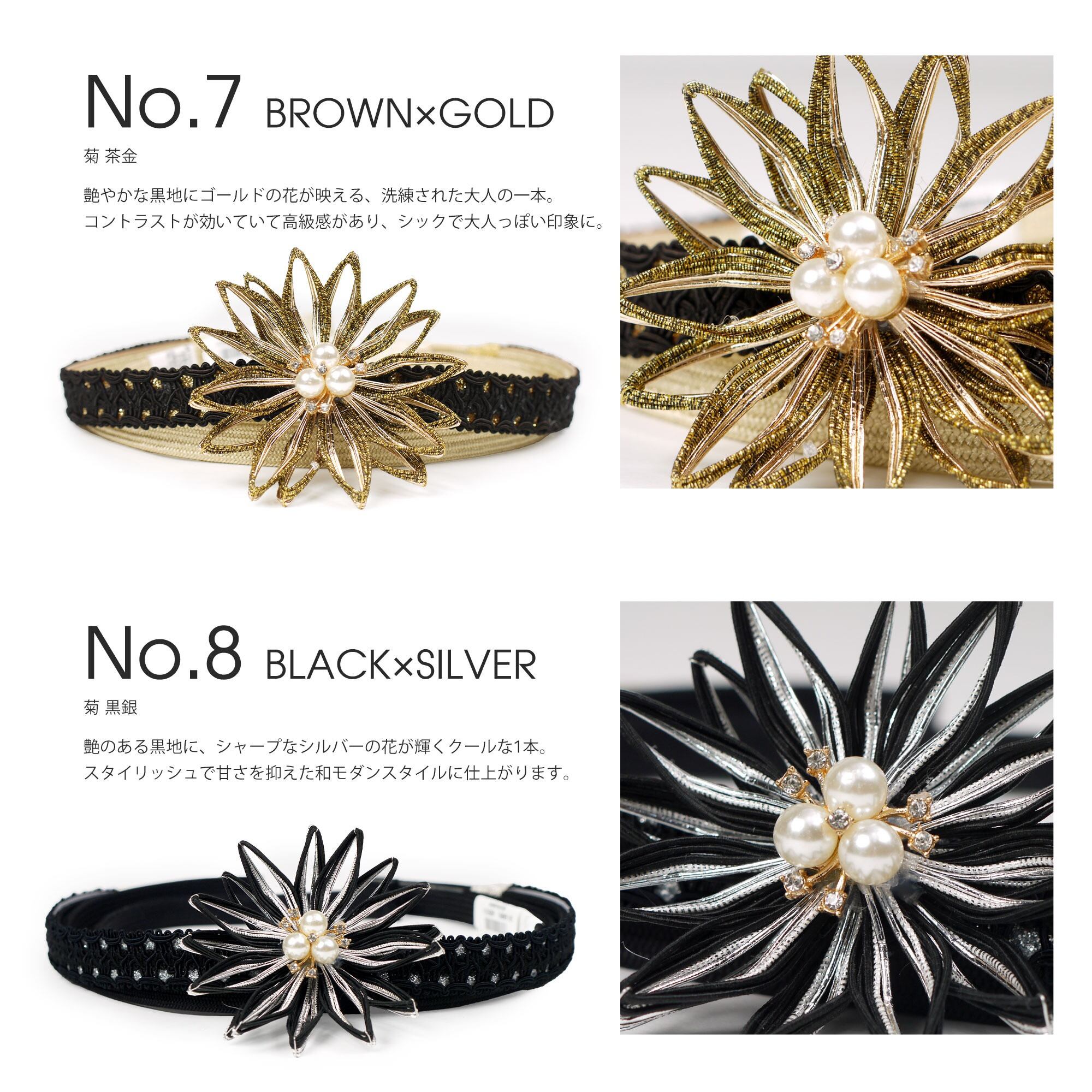 ゴールドや赤、ニュアンスカラーまで揃った全8色展開で、シーンや振袖に合わせてお選びいただけます。