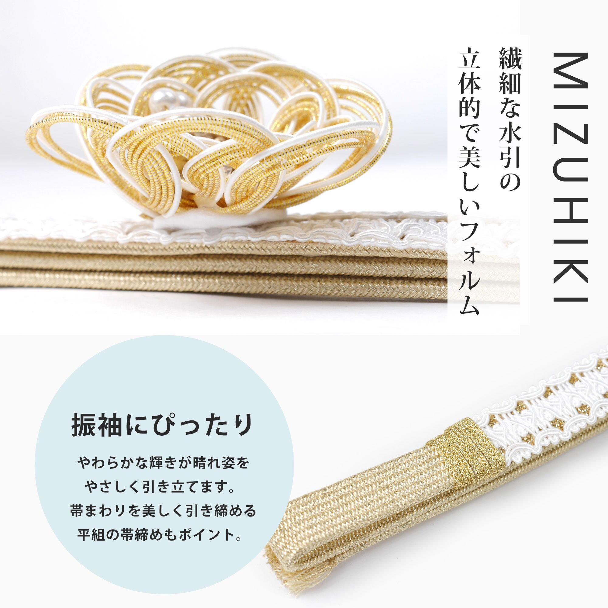 晴れの日の振袖姿に、特別な輝きを添える「水引き帯締め」です。