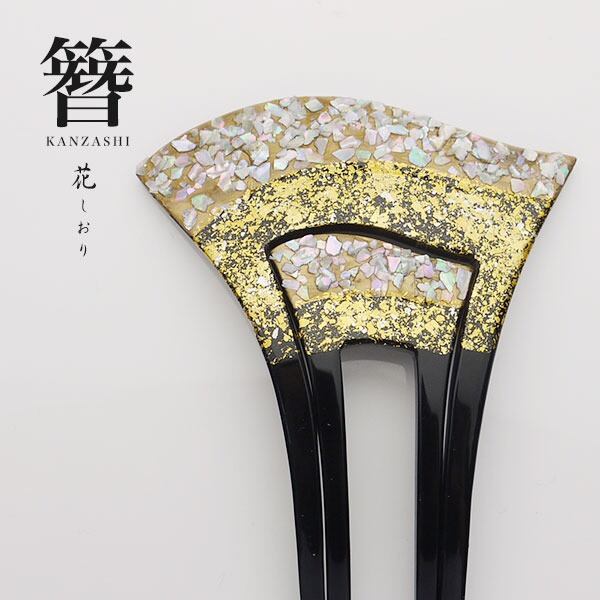 黒台に金箔と螺鈿風(らでんふう)の輝きが美しく映える、上品な和風かんざし2本セットです。