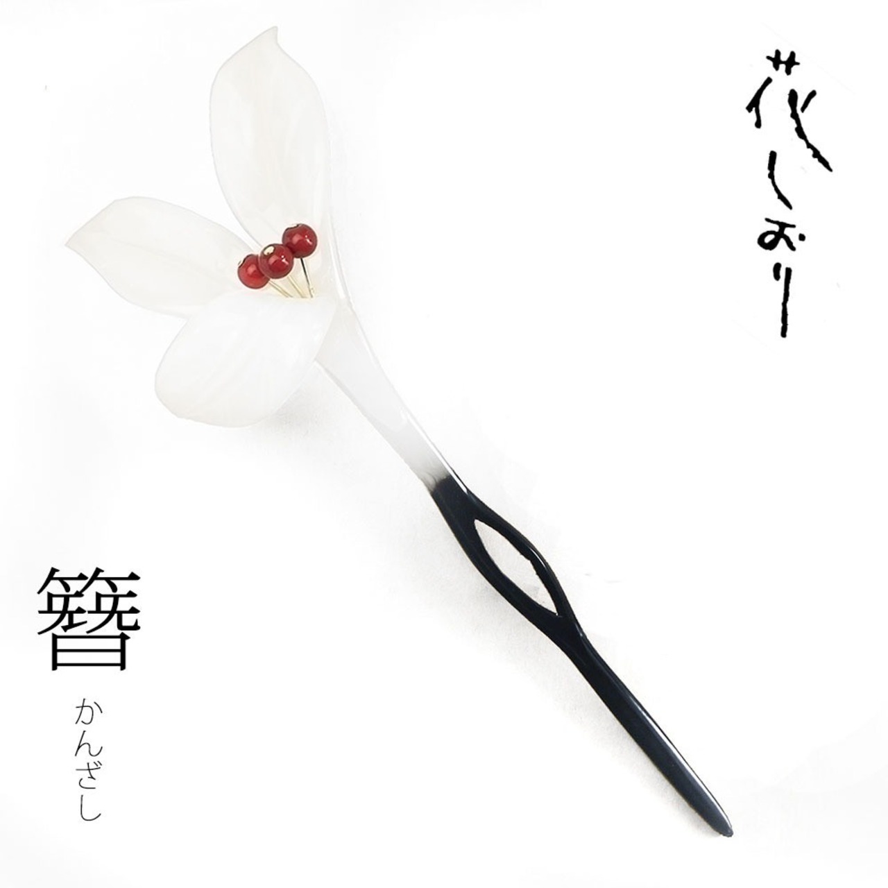【花しおり】白花×赤実の透明感あるかんざし|清楚で上品な和装アクセ