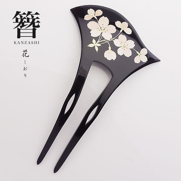 上品な光沢を持つ黒漆調のボディに、優美な桜の花を描いた和風かんざし。