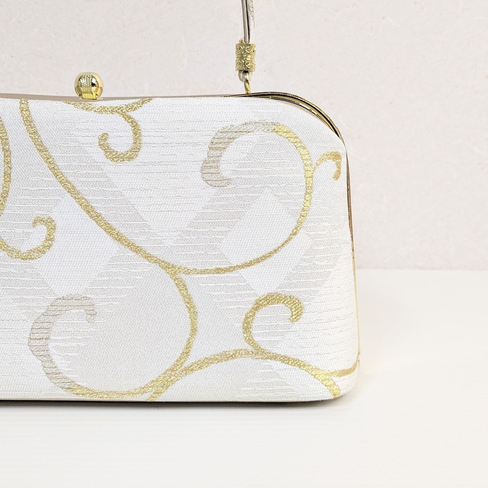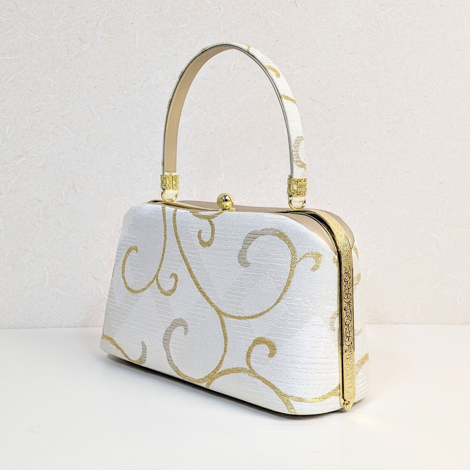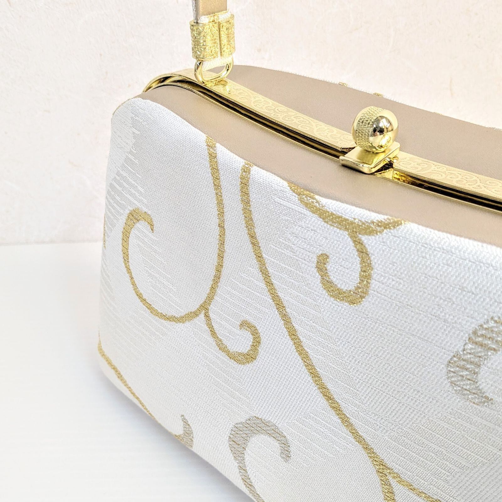 草履バッグセット 正絹 帯地 白 金 唐草 ゴールド フリーサイズ u17