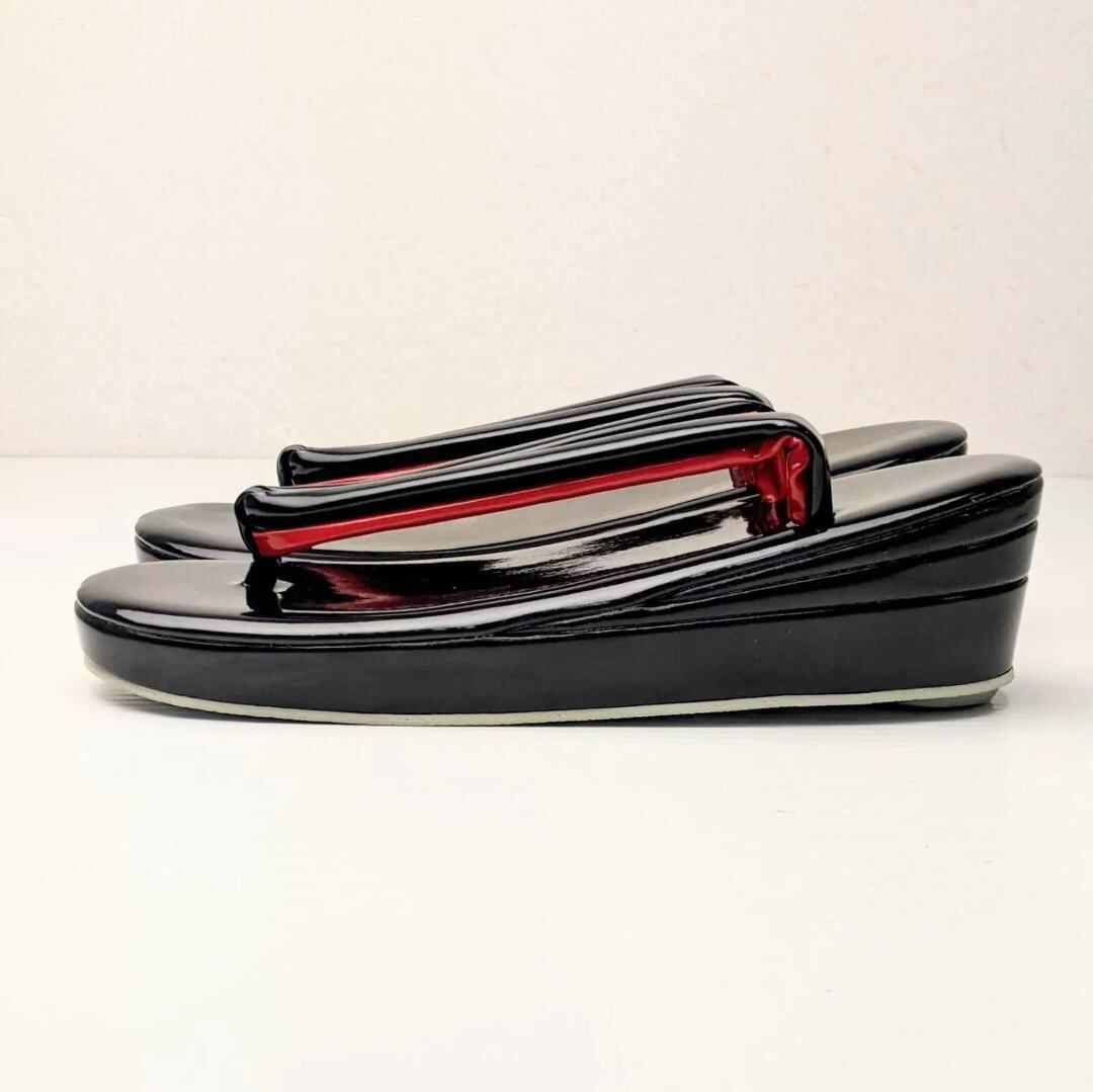 和装 草履 振袖 小紋 エナメル 黒×赤 三枚芯 S〜3Lサイズ u27-6