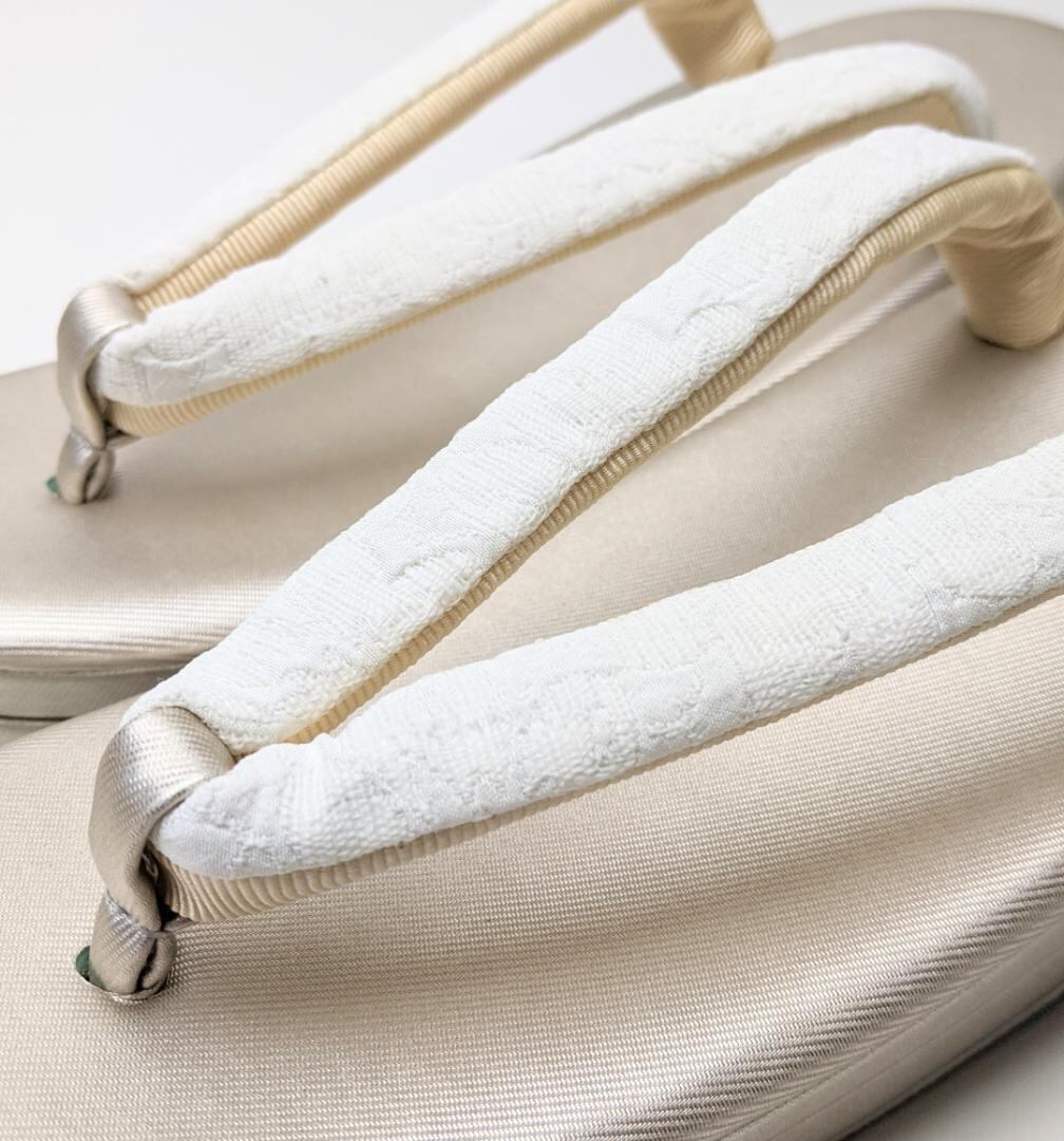 ふくれ織 草履 バッグ セット ホワイト ゴールド フリーサイズ U33-1