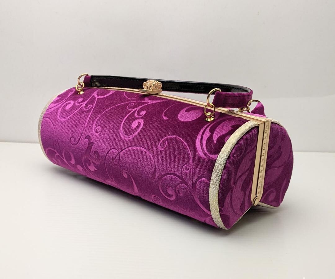 ワイドなバッグがインパクトのある、ベルベットの生地がおしゃれな草履とバッグ。
