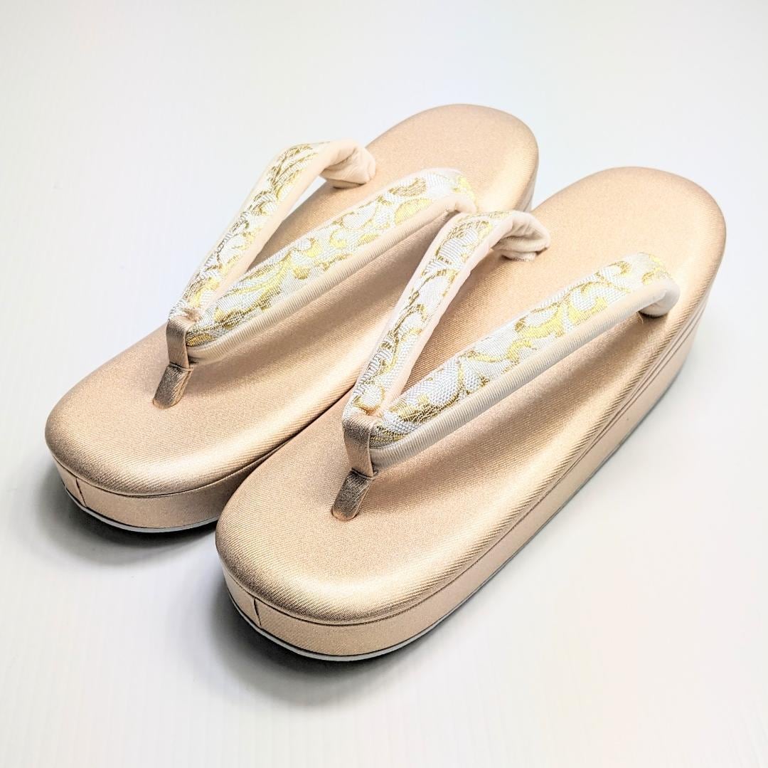 草履のサイズは、着物の裾を踏んだり巻き込んだりしないよう、かかとが台から少しはみ出すのが理想的なサイズとされています。