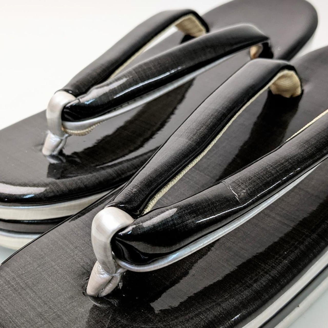 和装 草履 バッグ セット エナメル 黒 チャコールグレー フリーサイズ u59