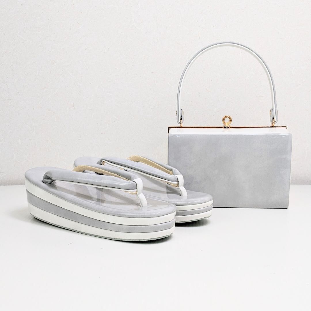 和装 草履 バッグ セット エナメル グレー シルバー 白 フリーサイズ u59