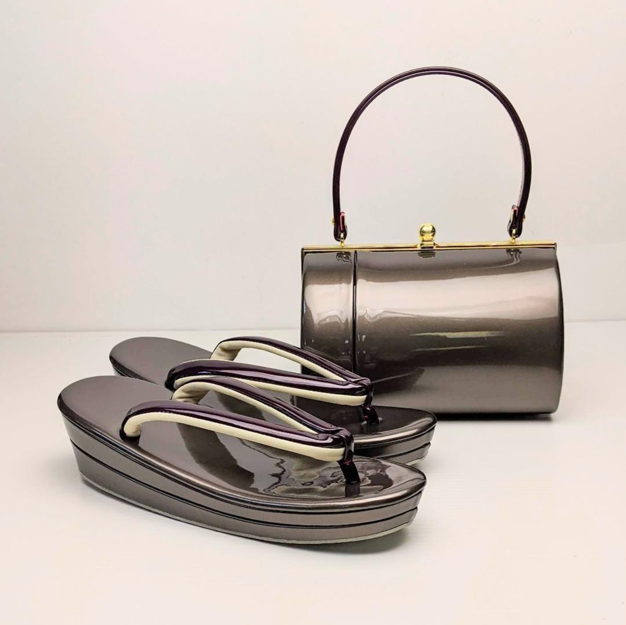 光沢の綺麗なエナメルのオシャレな草履バッグセットです。