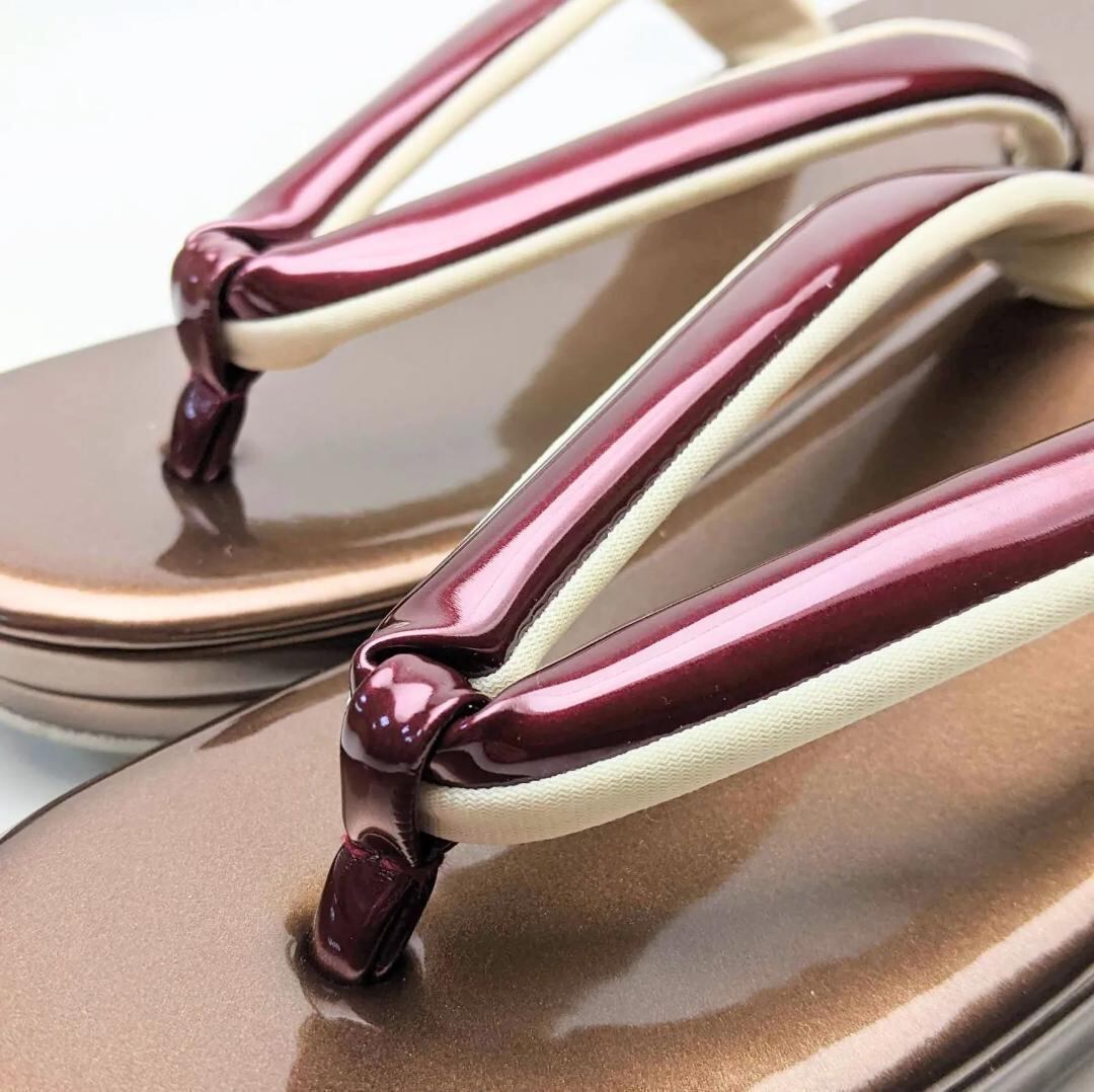 光沢の綺麗なエナメルのオシャレな草履バッグセットです。