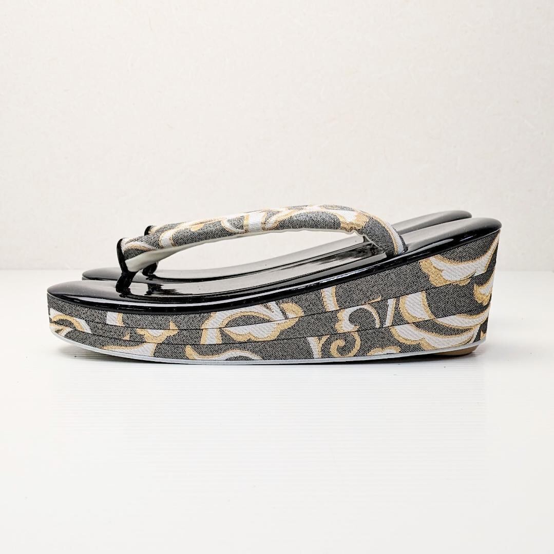 光沢の綺麗なエナメルの草履の台には程よいクッション性があり、長時間履いても疲れにくい、大変履きやすい草履です。