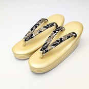 草履バッグセット 振袖用 エナメル×レース 金×黒 フリーサイズ u72-1