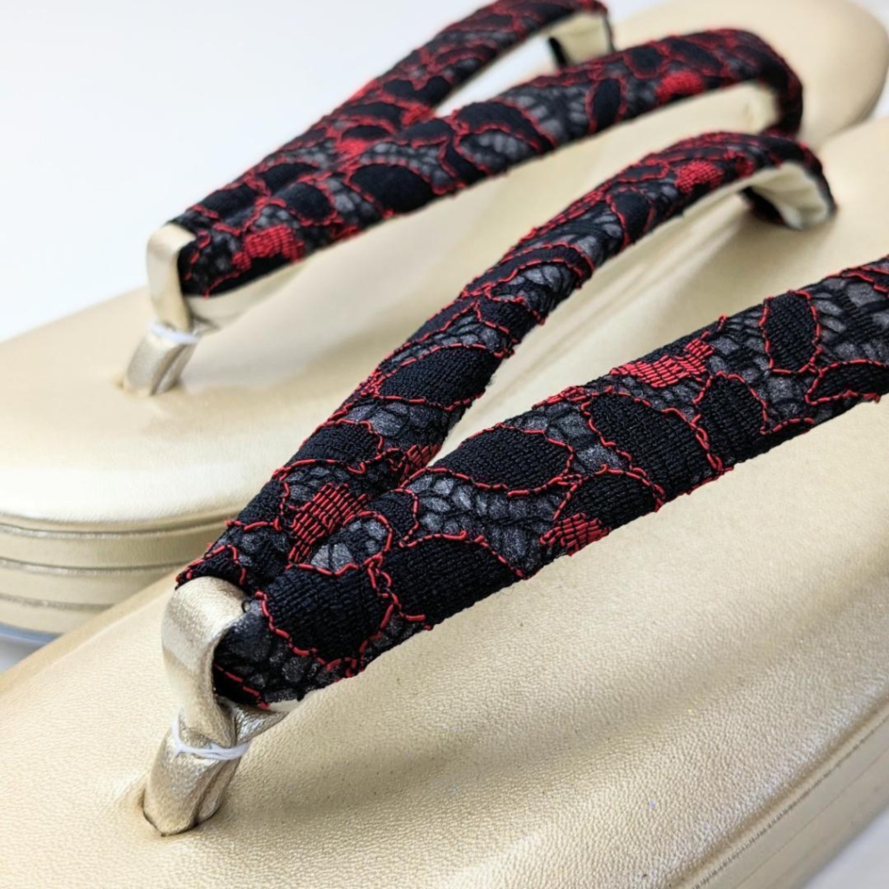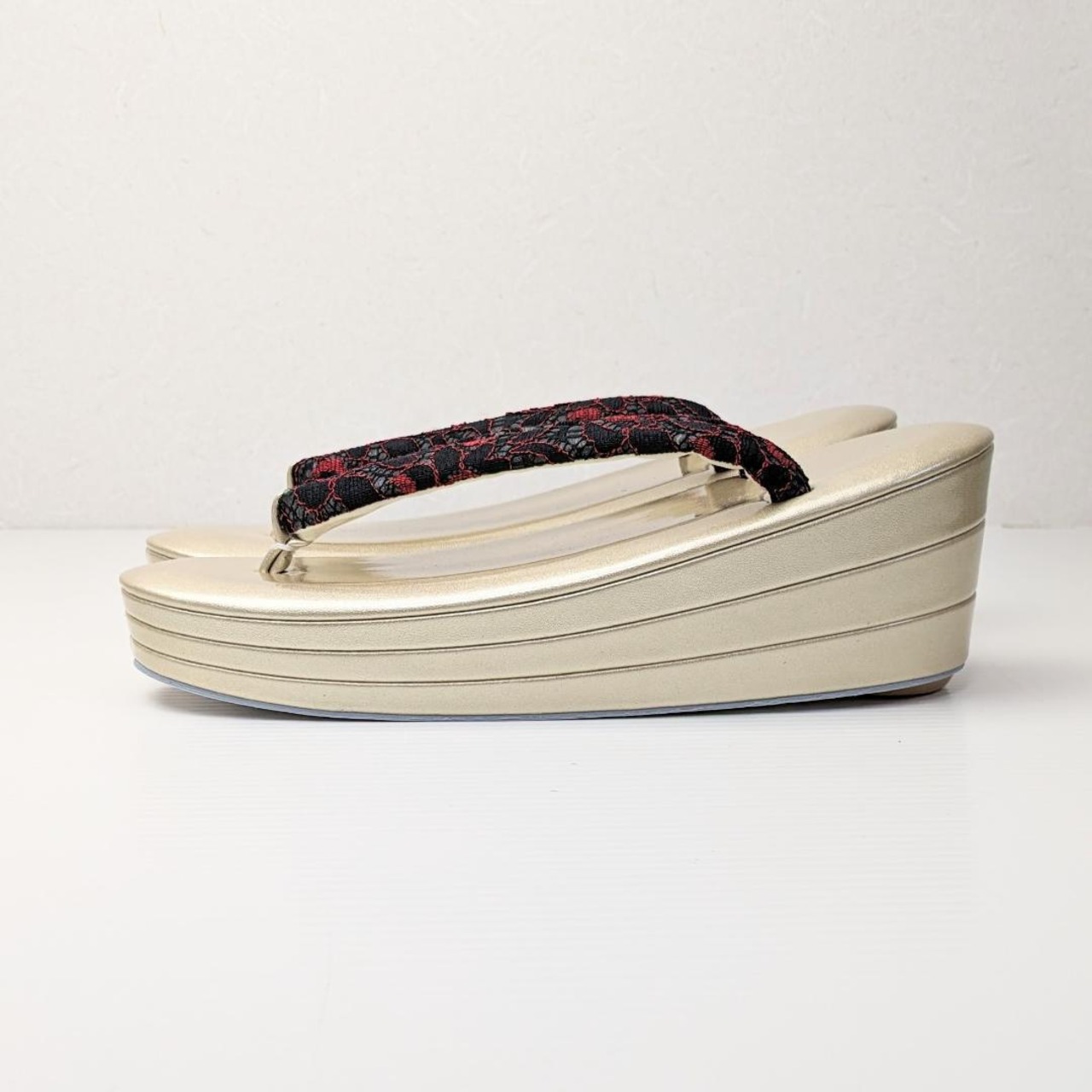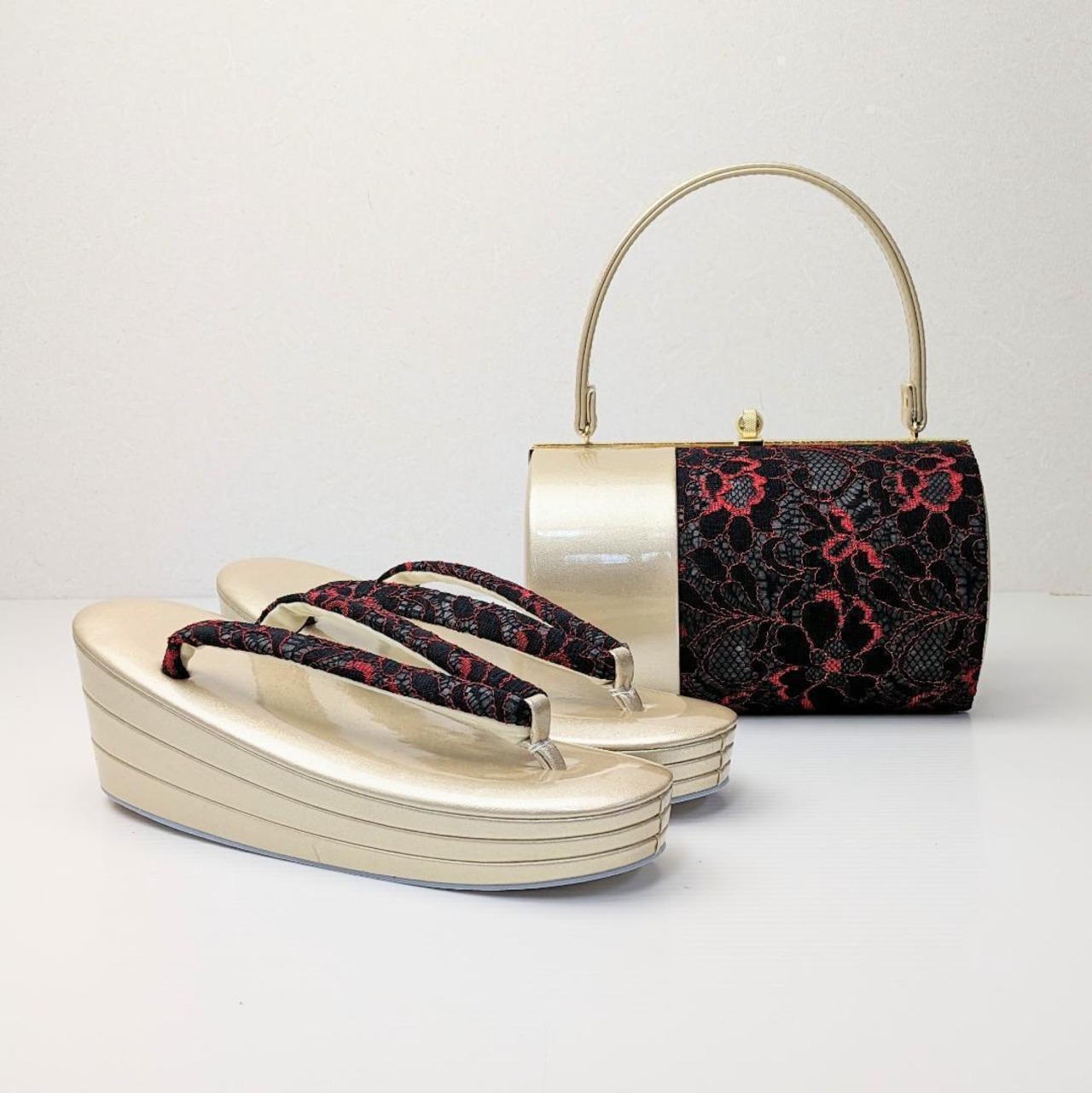 草履バッグセット 振袖用 エナメル×レース 金×赤 フリーサイズ u72-5