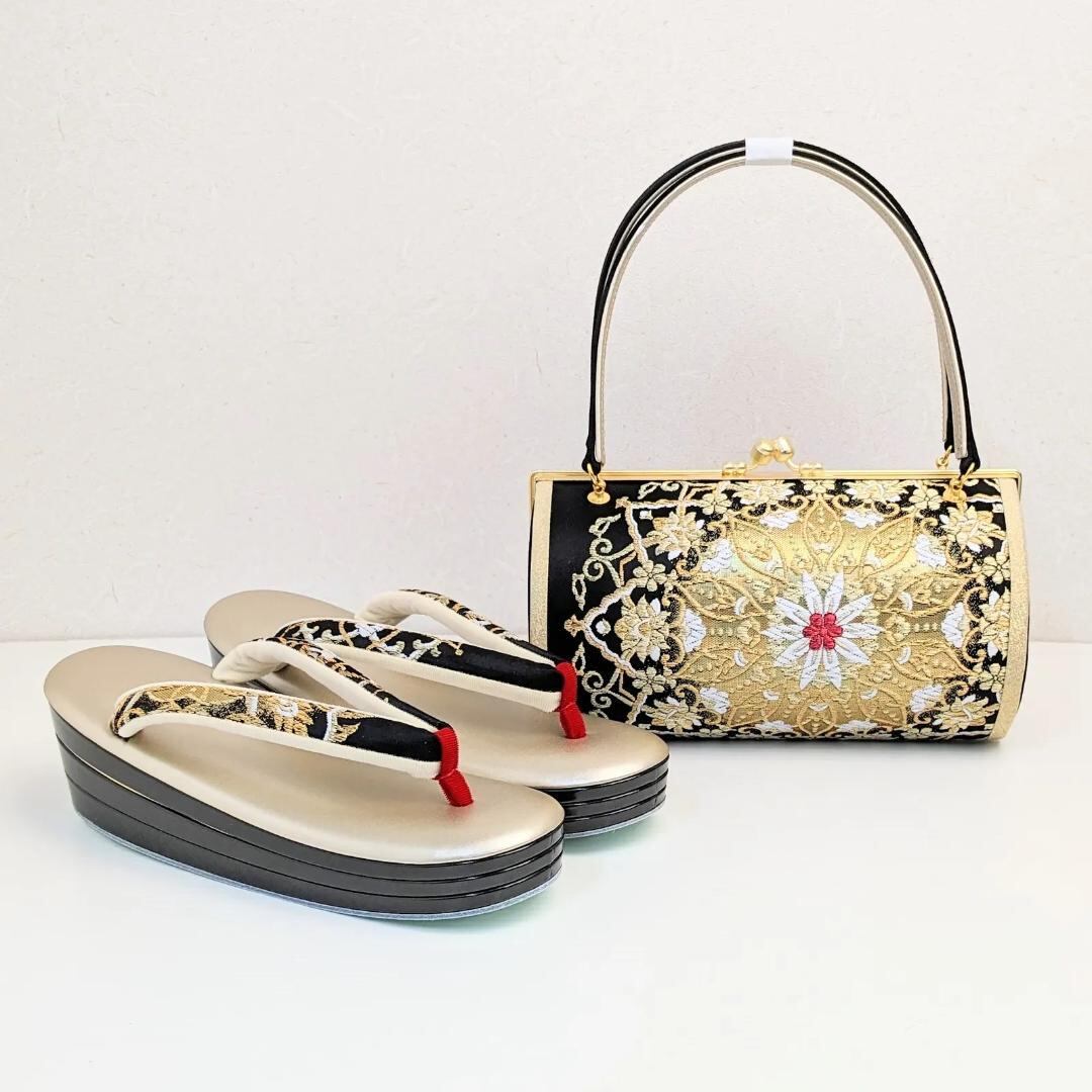 草履バッグセット 岩佐ブランド 西陣 帯地 古典 黒 フリーサイズ u85