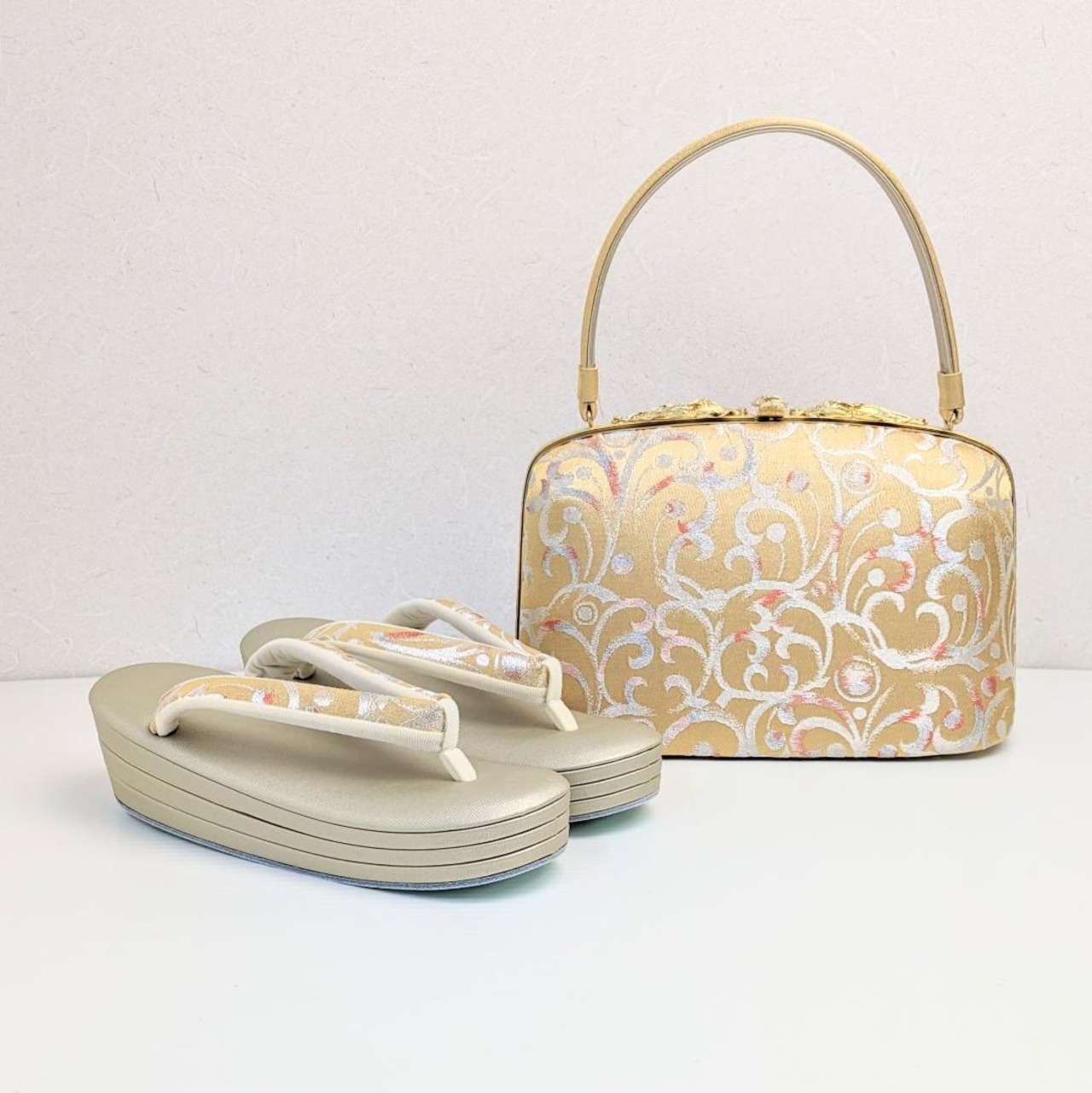 草履バッグセット 岩佐ブランド 西陣 帯地 ゴールド フリーサイズ u86-1