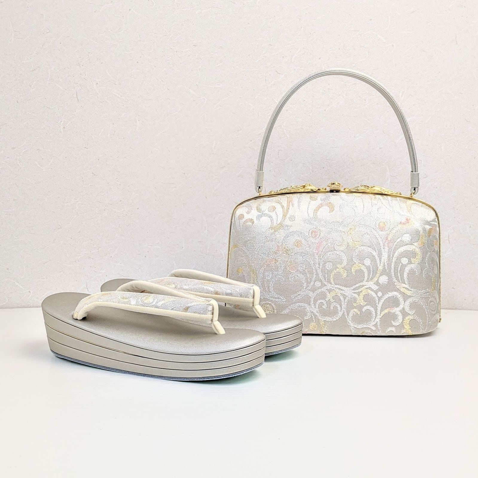 草履バッグセット 岩佐ブランド 西陣 帯地 シルバー フリーサイズ u86-2