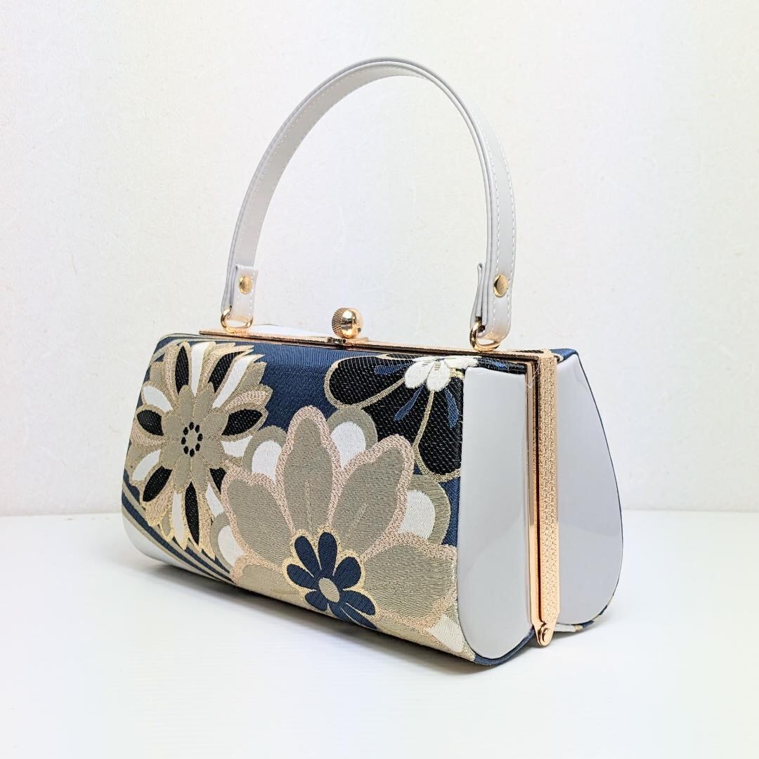 和装 草履 バッグ セット 帯地 グレー ネイビー フリーサイズ u94-5