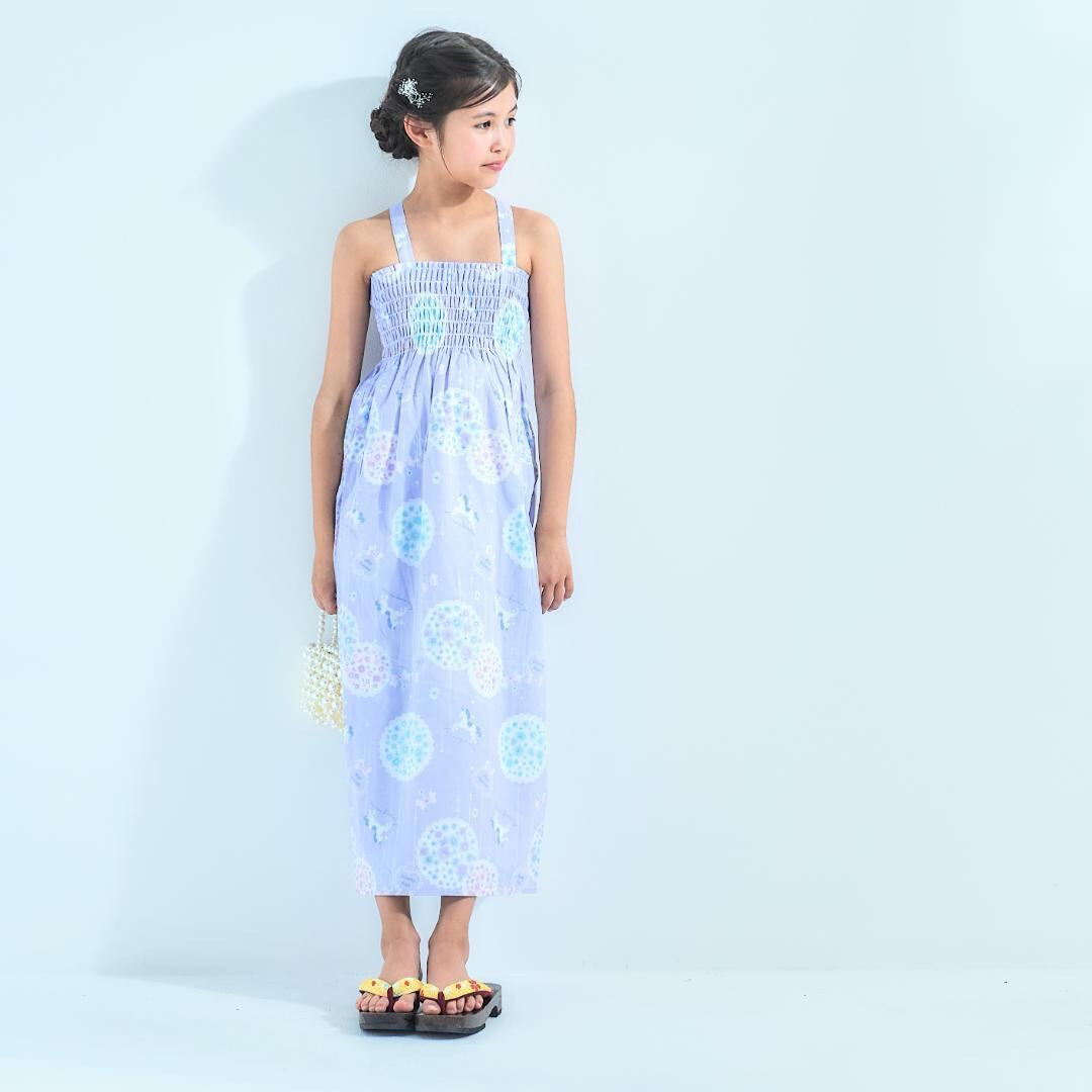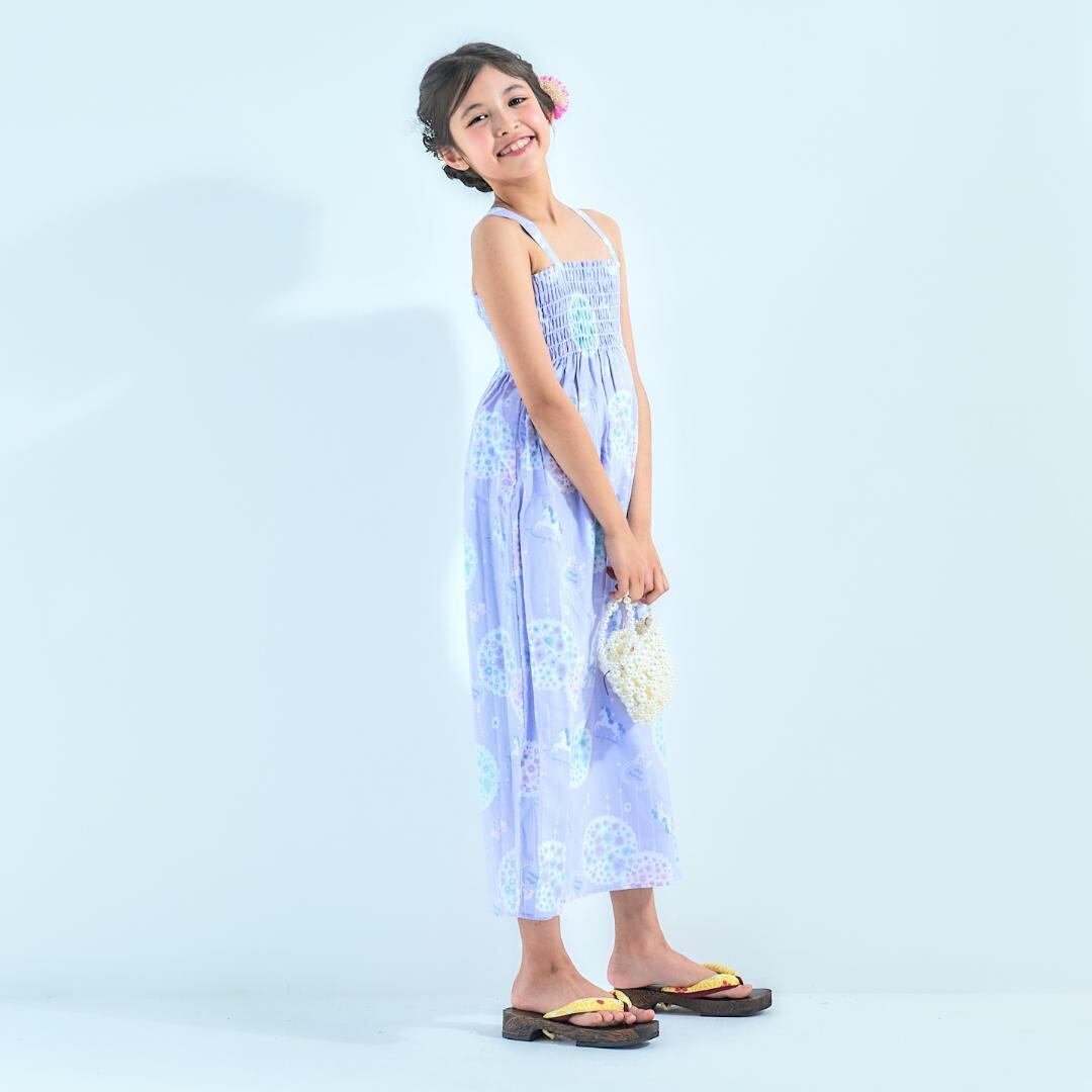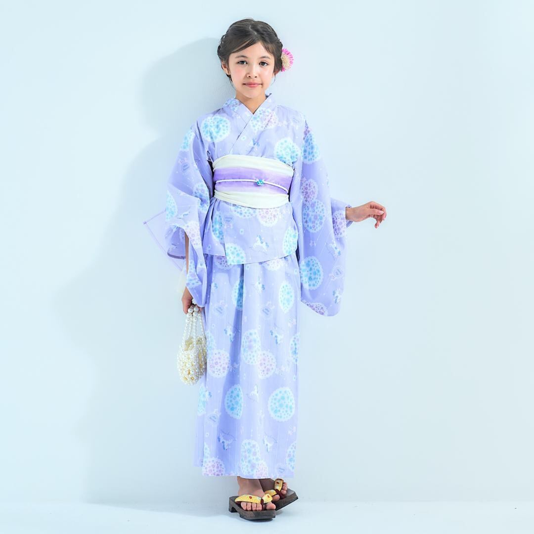 キッズ 子供 2way 浴衣 ワンピース 帯付き 紫 ラベンダー 100〜150cm 10w-6