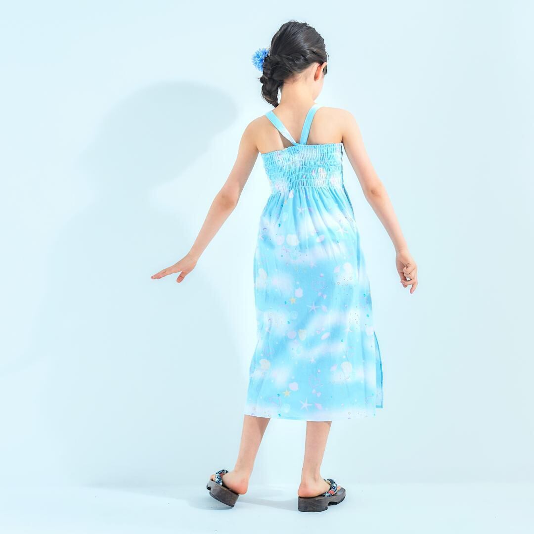 キッズ 子供 2way 浴衣 ワンピース 帯付き 青 水色 100〜150cm 10w-7