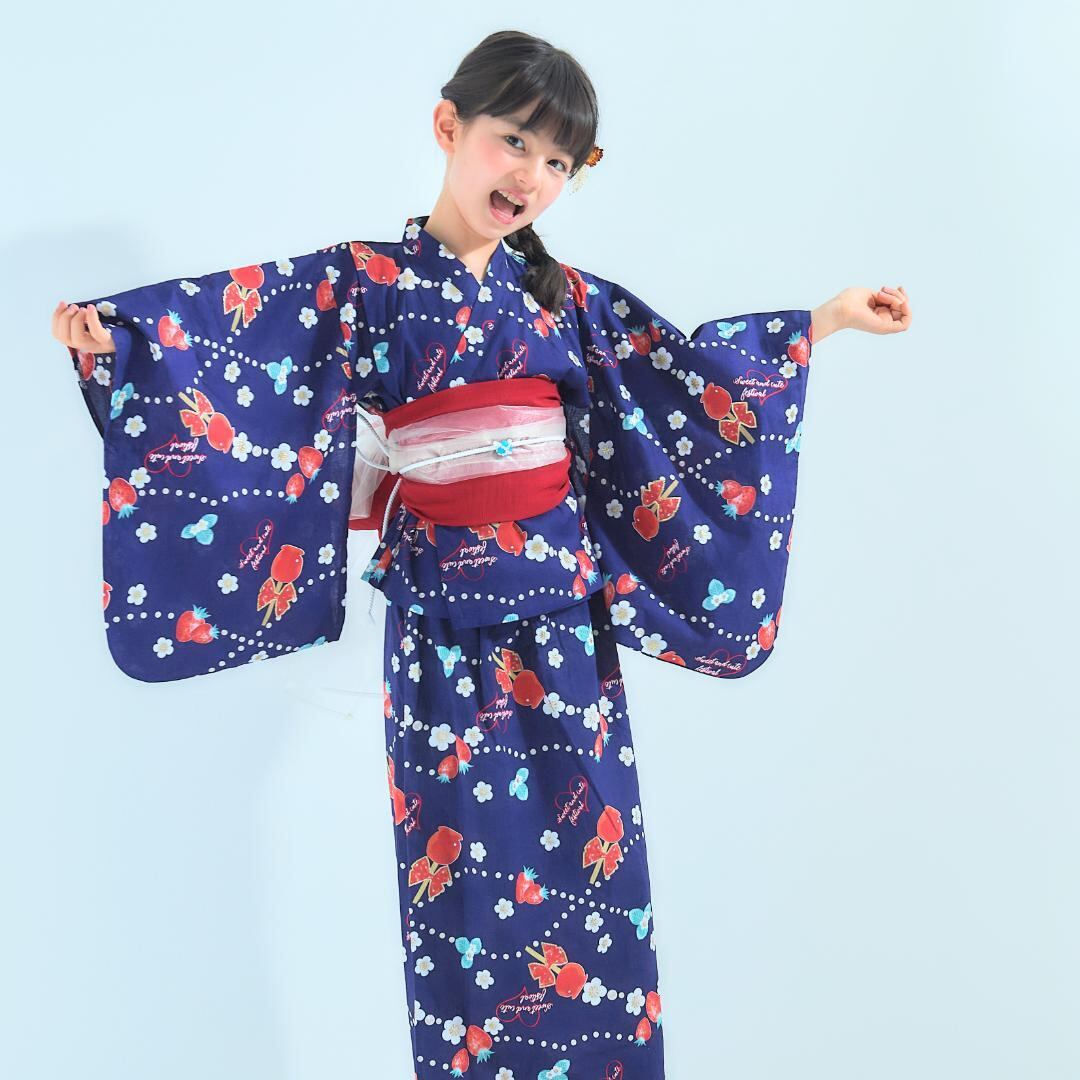 可愛い色柄の子供用、キッズ浴衣です。