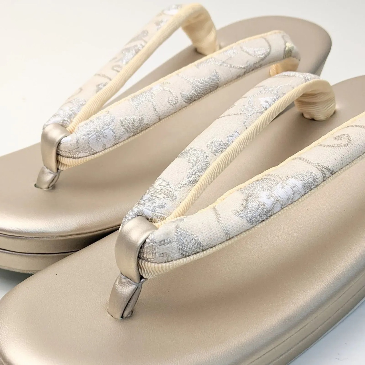 草履のサイズは、着物の裾を踏んだり巻き込んだりしないよう、かかとが台から少しはみ出すのが理想的なサイズとされています。