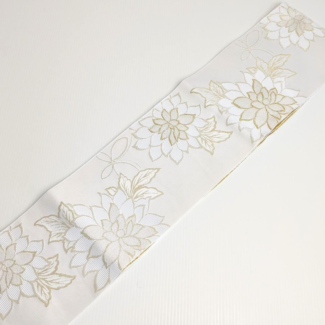 半幅帯 半巾帯 単衣 ホワイト ダリア 白金 400cm No.7