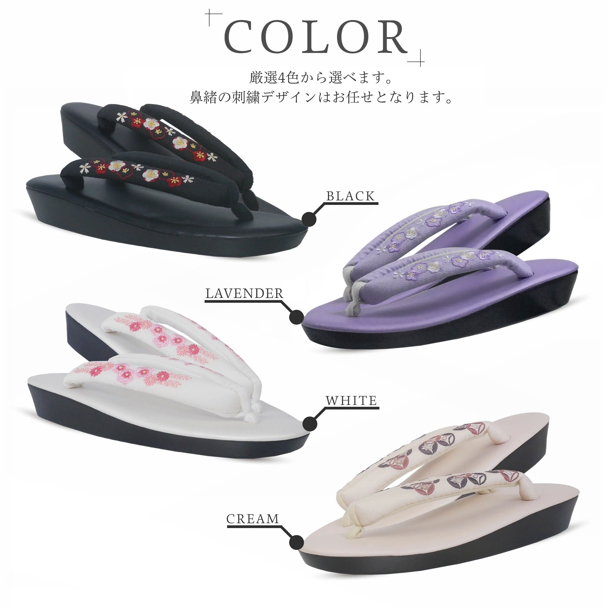 鼻緒の柄おまかせ ウレタン 草履 刺繍の鼻緒 黒/白/紫/クリーム フリーサイズ M〜L相当
