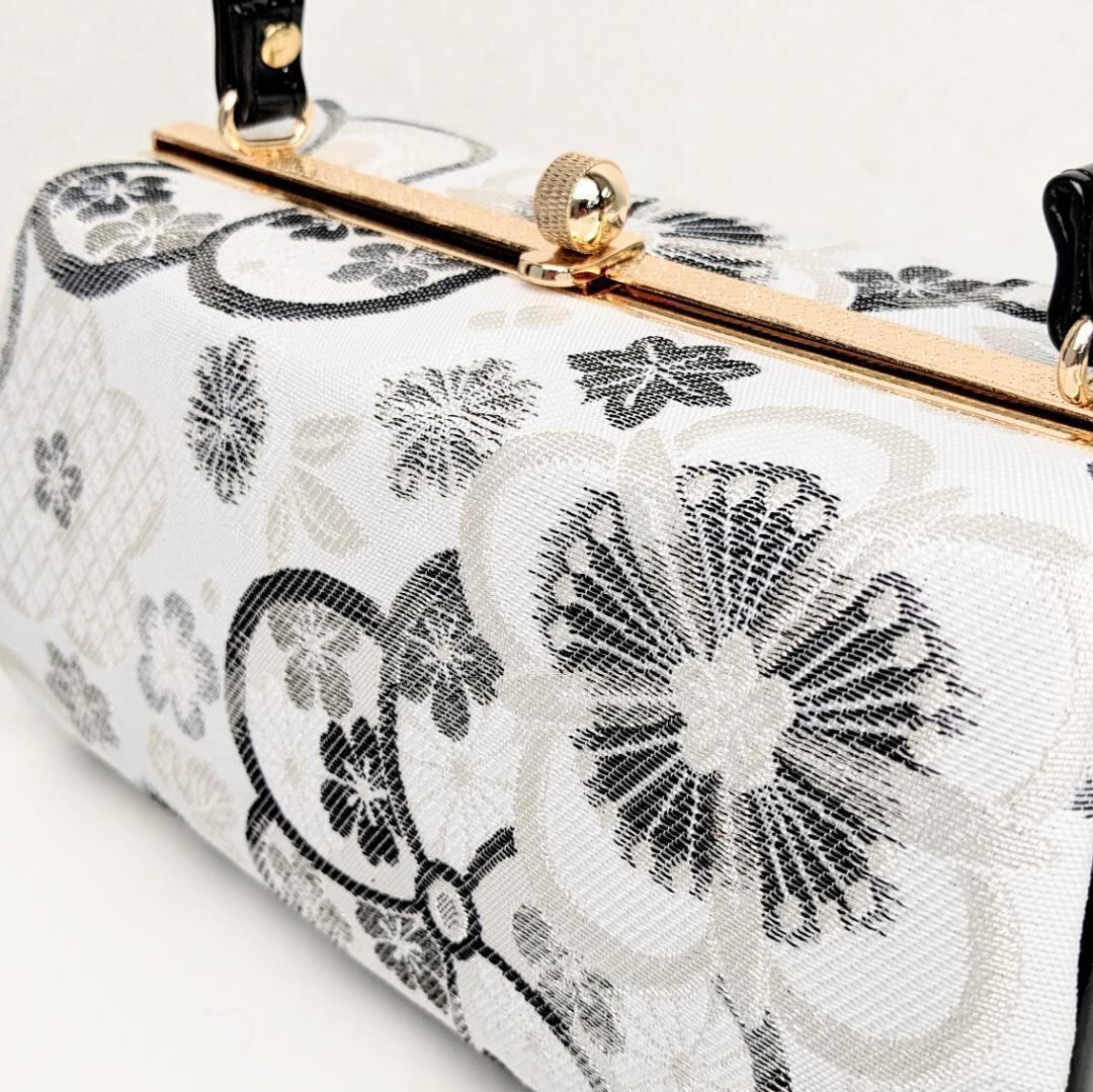 和装 草履 バッグ セット 帯地 梅 黒 ブラック 白 フリーサイズ w5-2