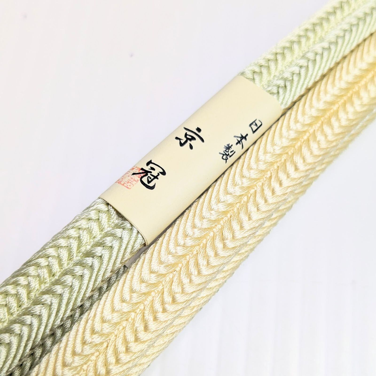 帯締め リバーシブル 絹100% 正絹 平 組紐 黄緑 黄色 w6-16