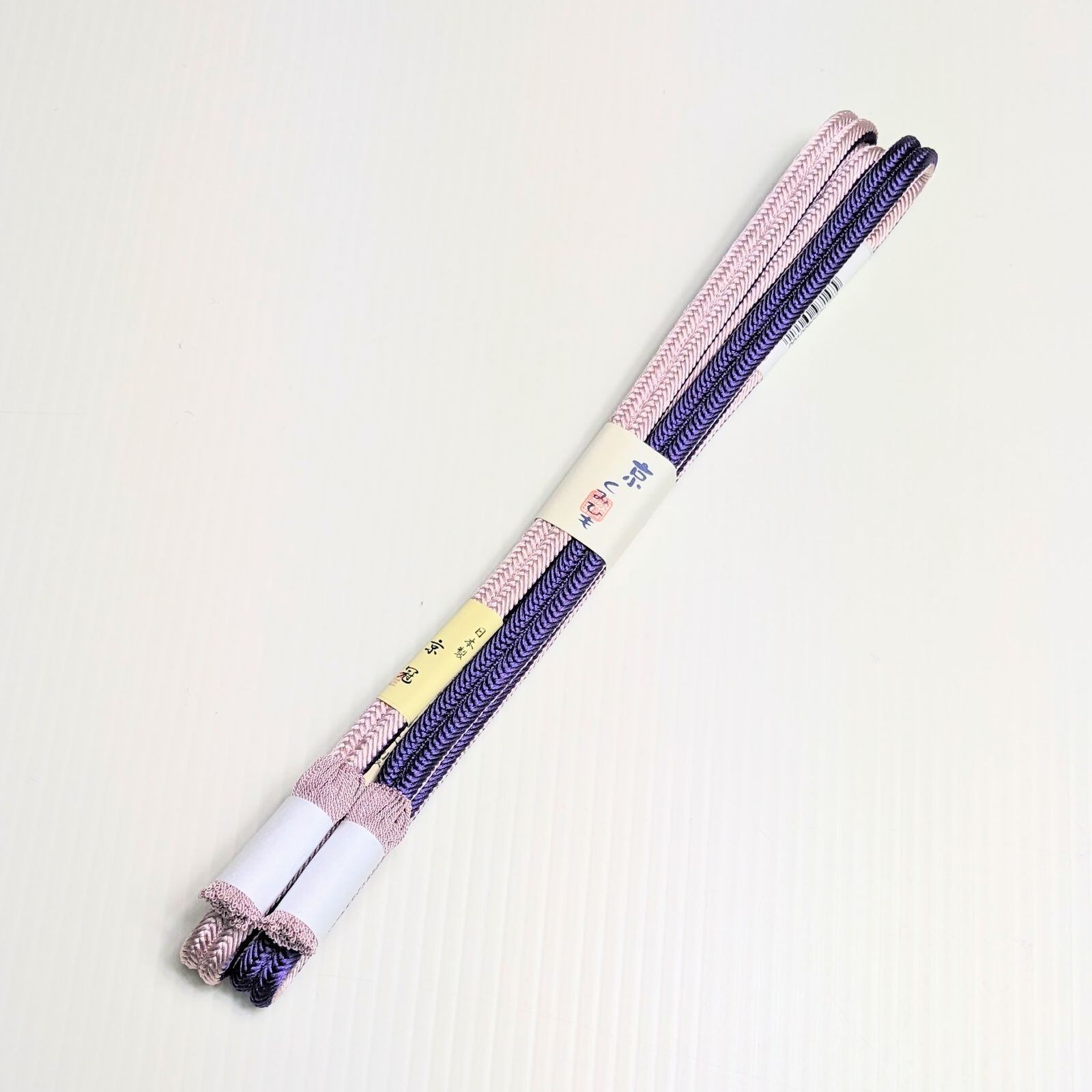 帯締め リバーシブル 絹100% 正絹 平 組紐 紫 ピンク w6-17