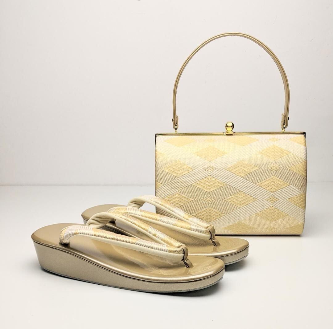 和装 草履バッグセット フォーマル 帯地 ゴールド フリーサイズ w14