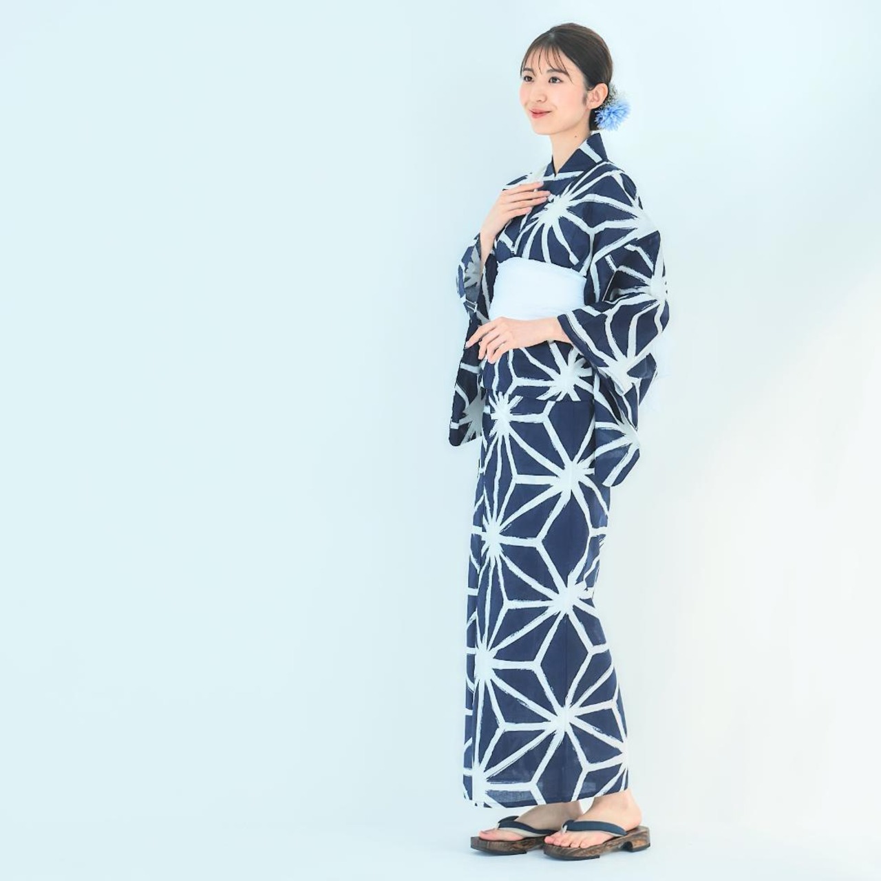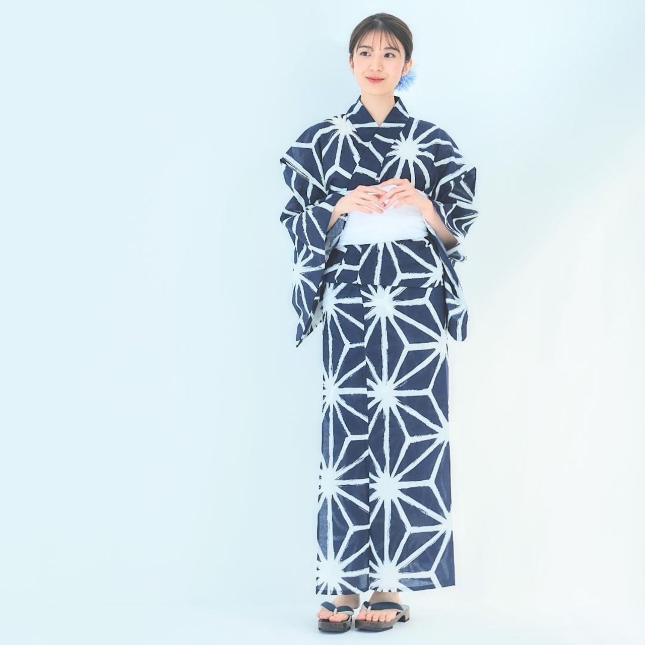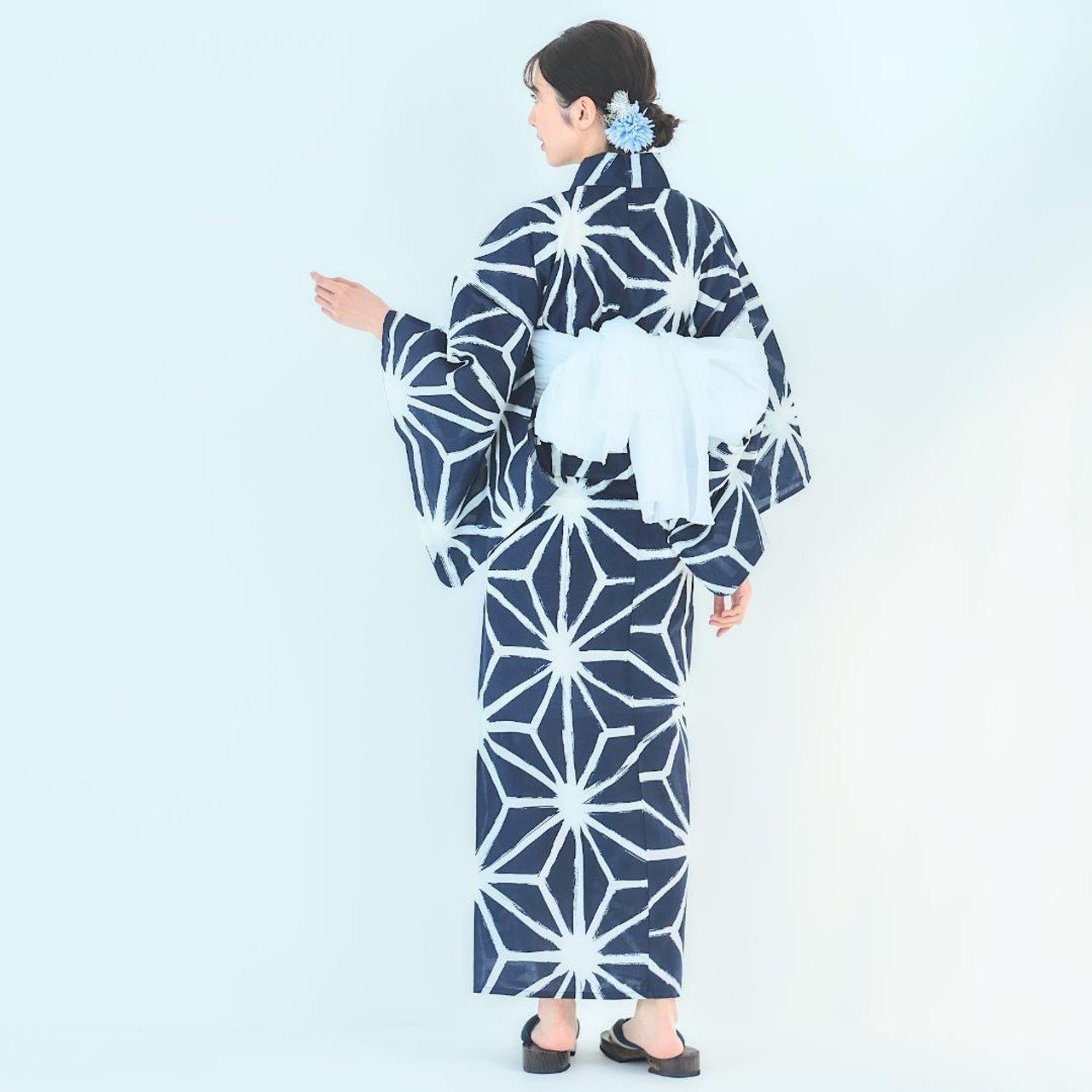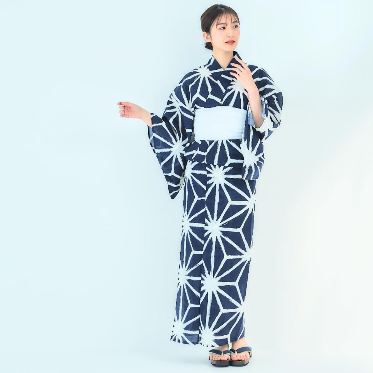 【2点セット】浴衣 兵児帯付き レディース 紺 ネイビー 麻の葉 wy18