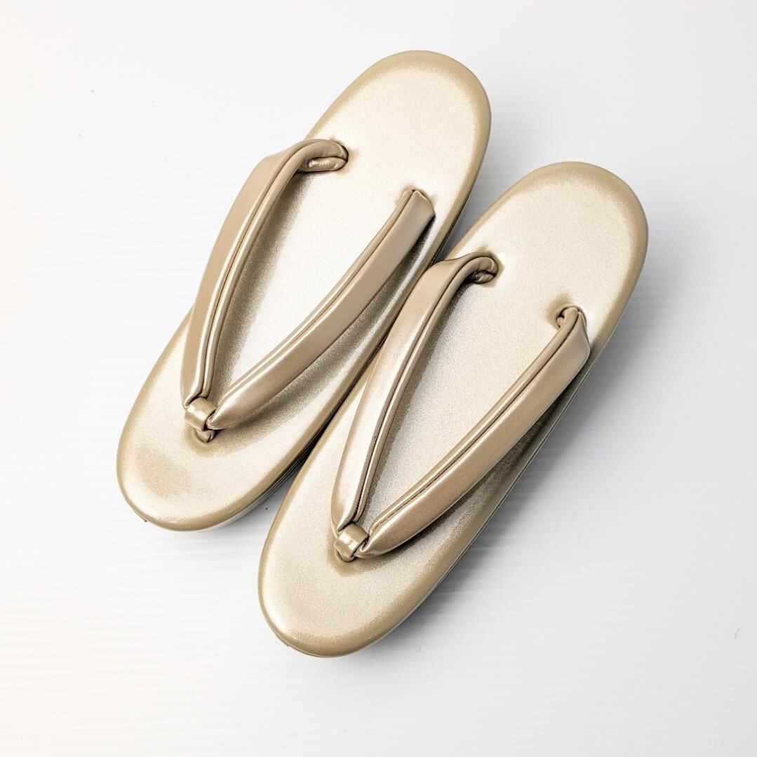 和装 草履 エナメル 三枚芯 ヒール草履 ゴールド S/M/Lサイズ w23