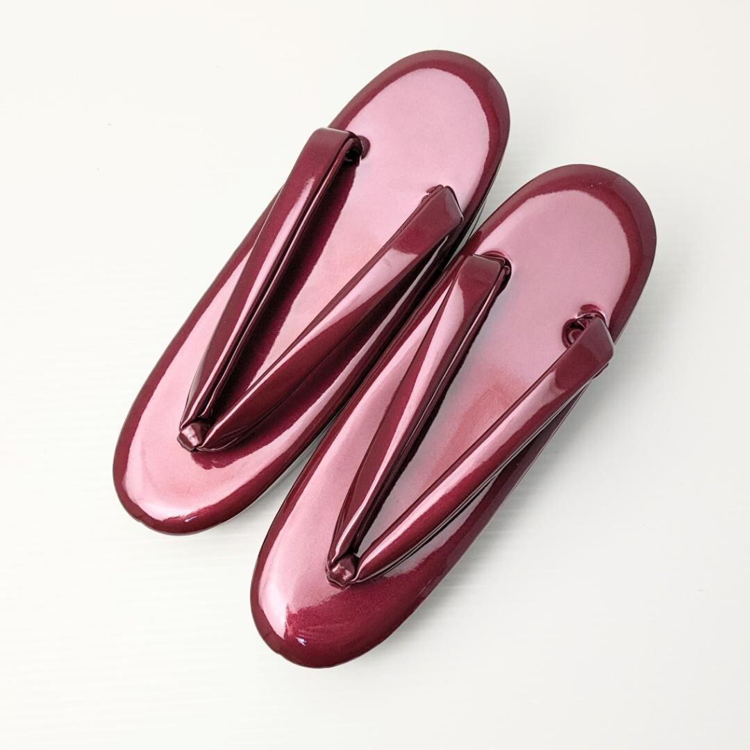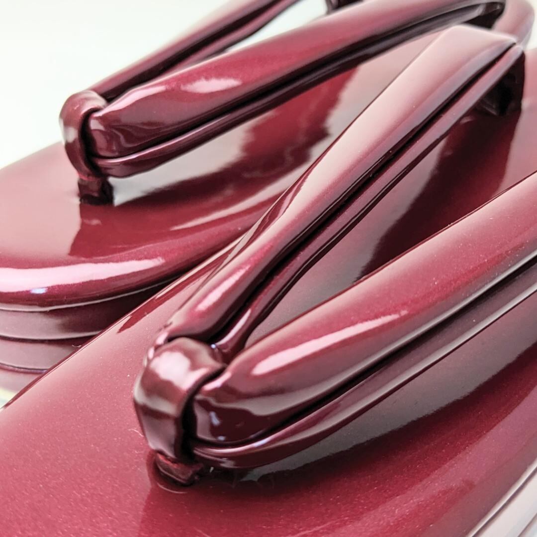 振袖や訪問着に合わせる光沢の綺麗なエナメルの三枚芯ヒール草履です。