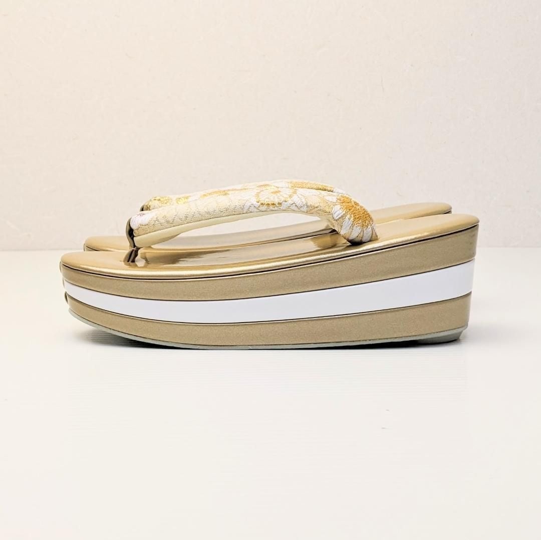 和装 草履バッグセット 振袖用 帯地 金×白 S/M/L/LLサイズ 三枚芯 w43-2