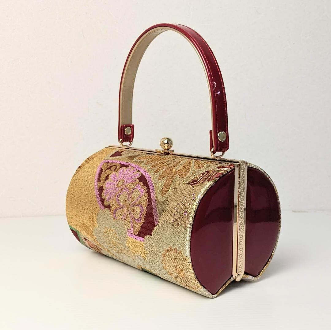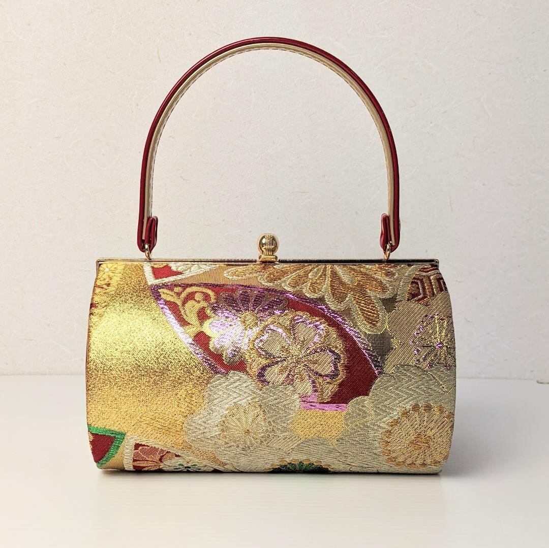 草履バッグセット 振袖 帯地 金 赤 古典 フリーサイズ w48-8