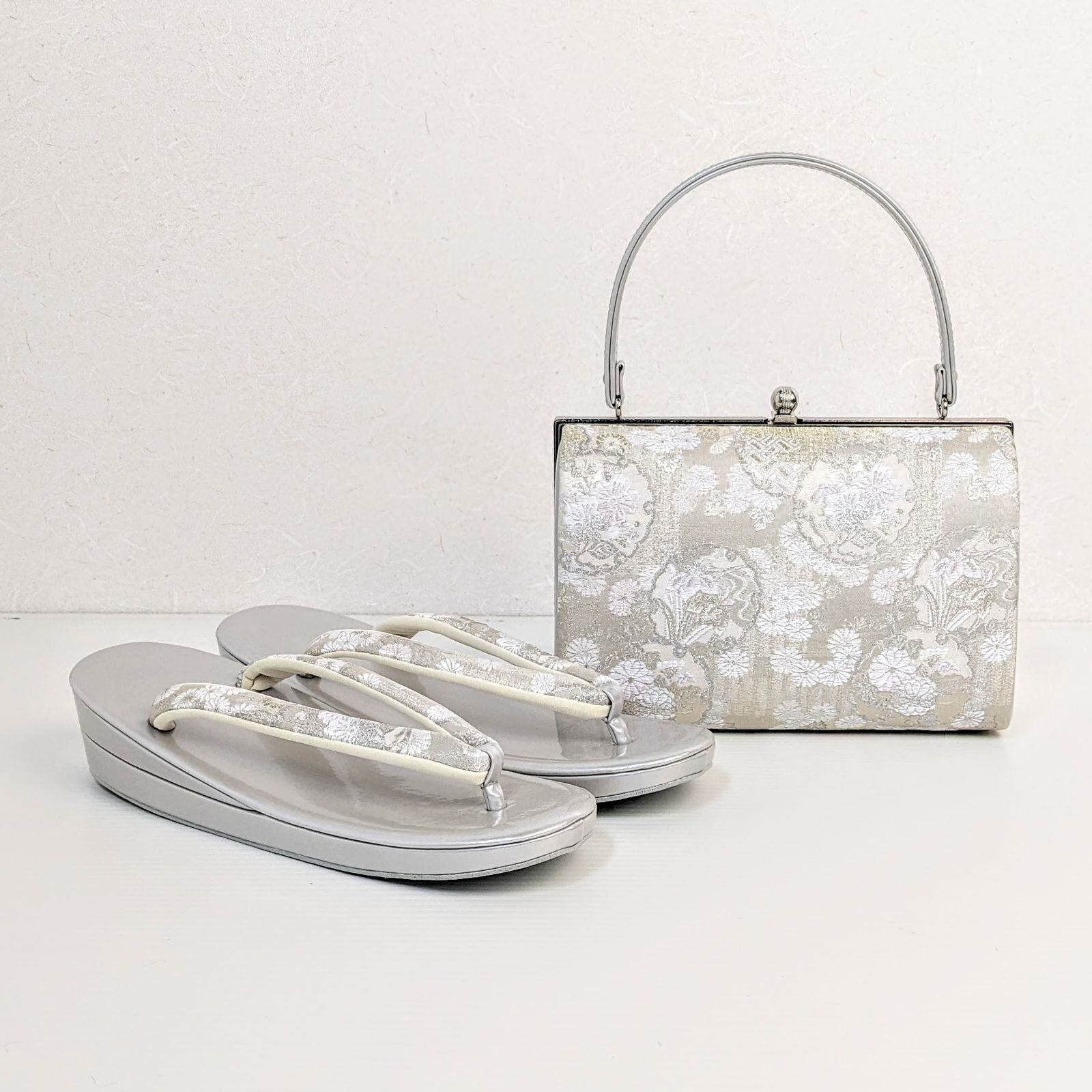 和装 草履バッグセット シルバー フォーマル 帯地 雪輪 M/LLサイズ w45