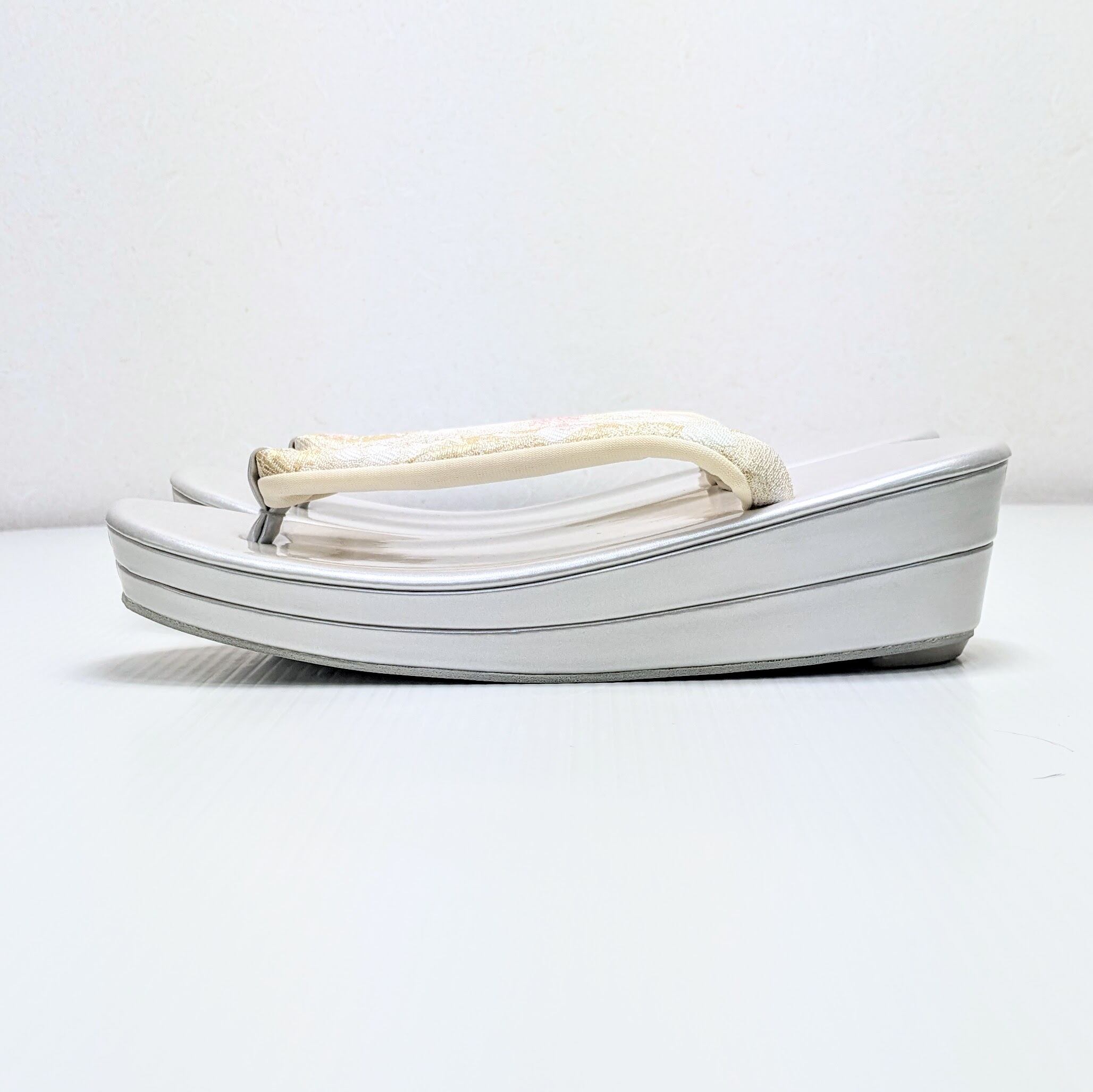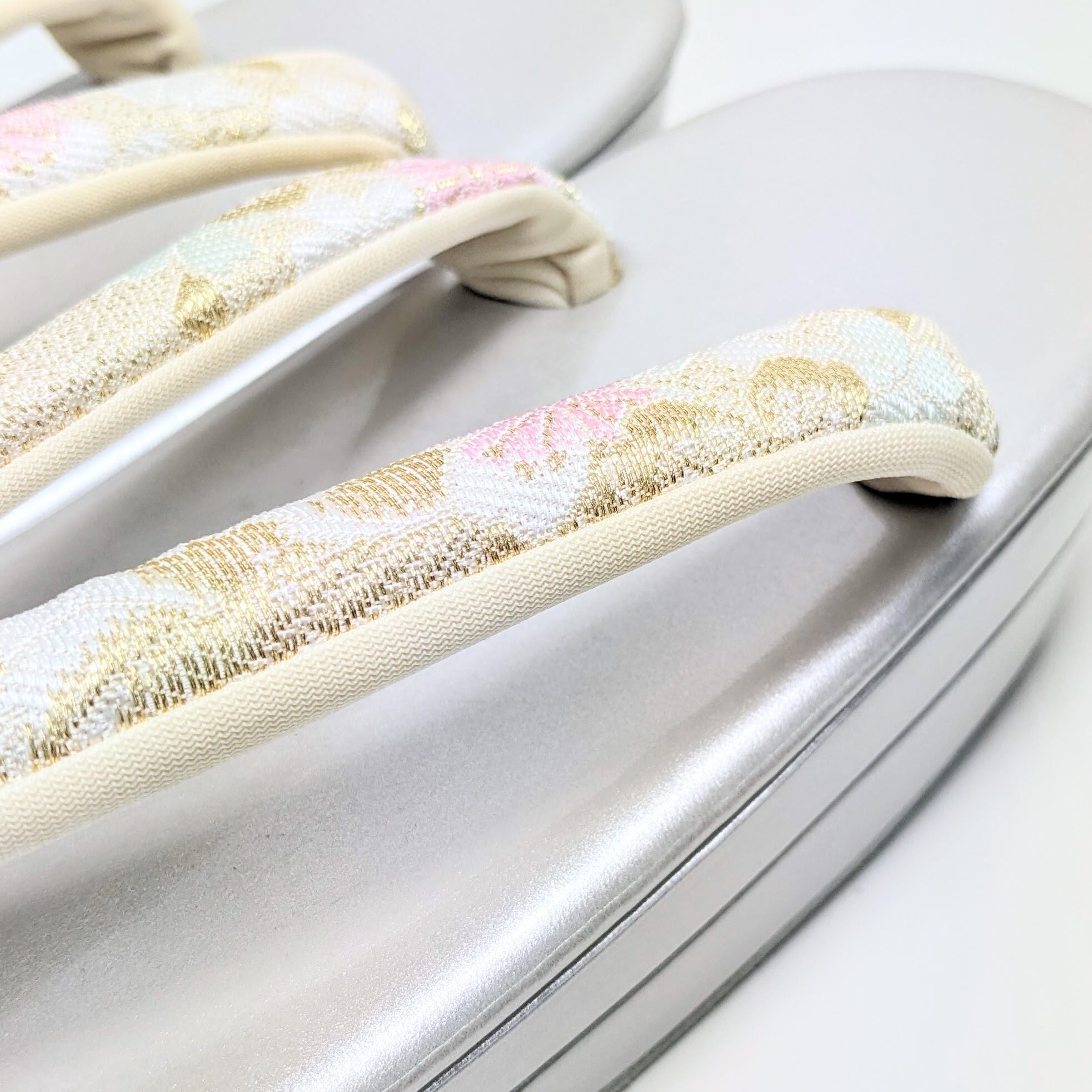 和装 草履 単品 帯地 古典 桜 銀 シルバー フリー/LLサイズ w36