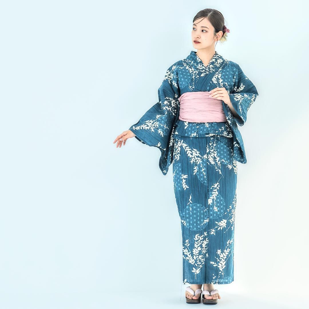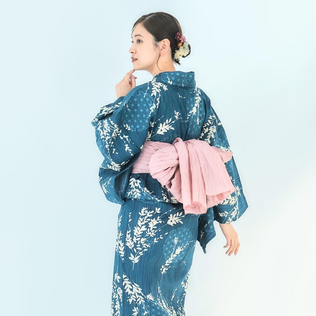 【綿麻】浴衣 単品 インディゴ 濃い緑 雪輪 フリーサイズ レディース wy34