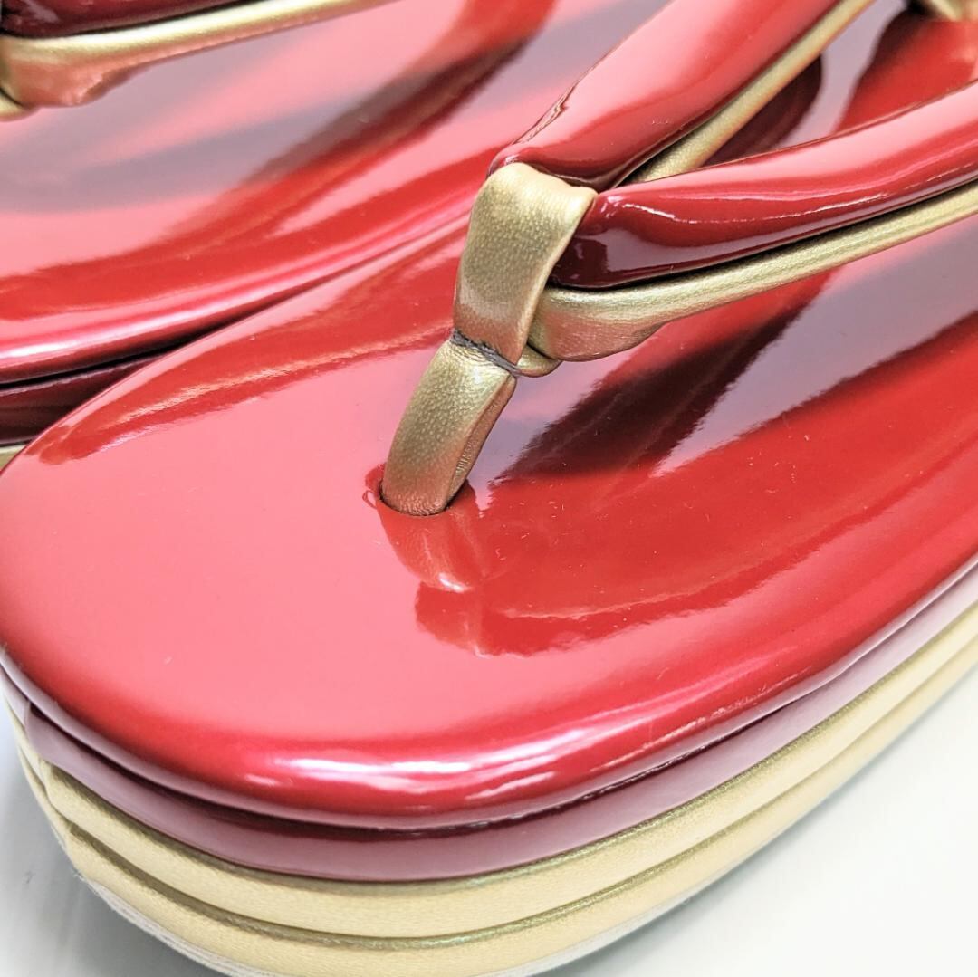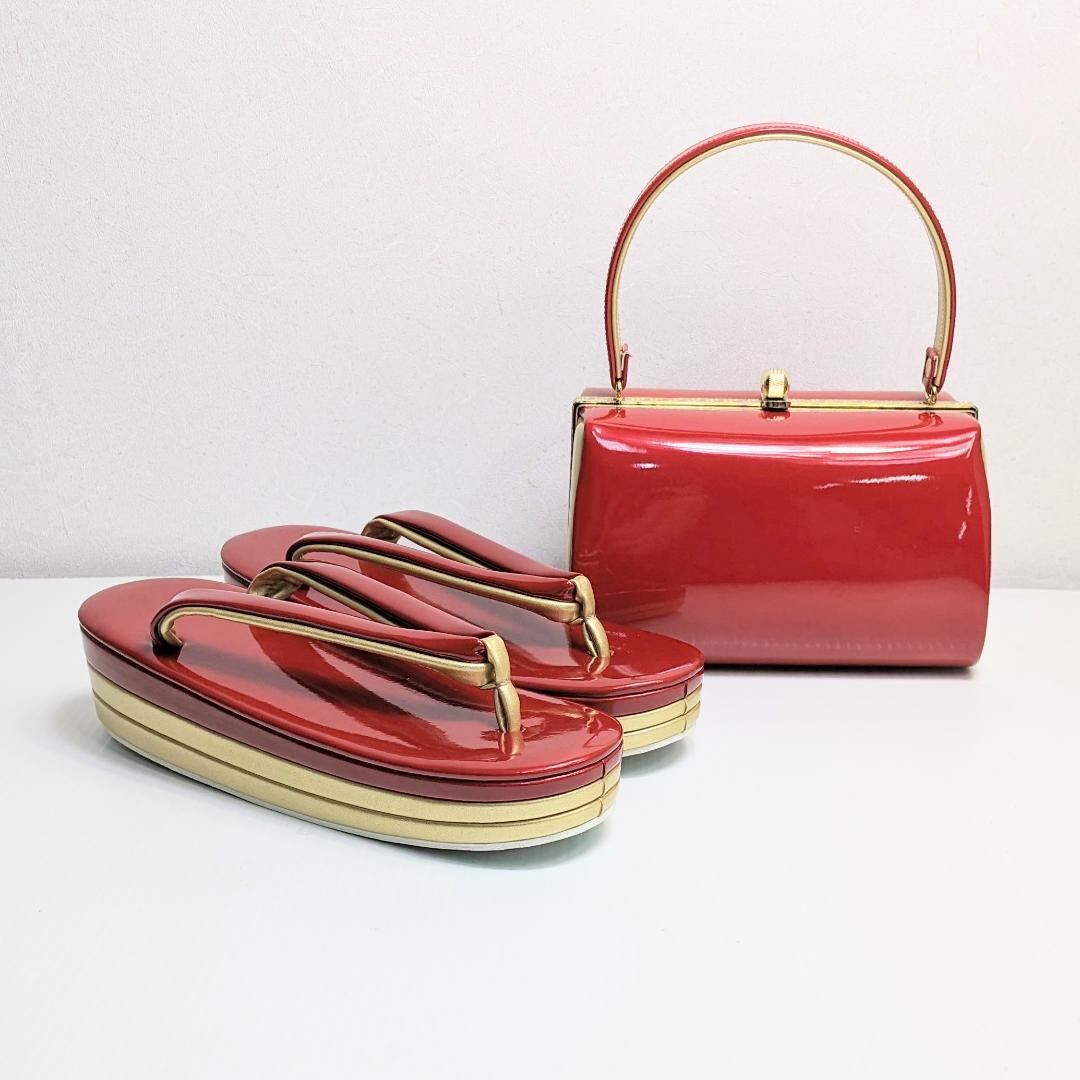 和装 草履 バッグ セット エナメル 赤 金 ゴールド フリーサイズ/LLサイズ w56-1