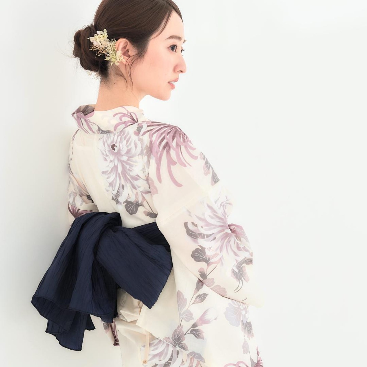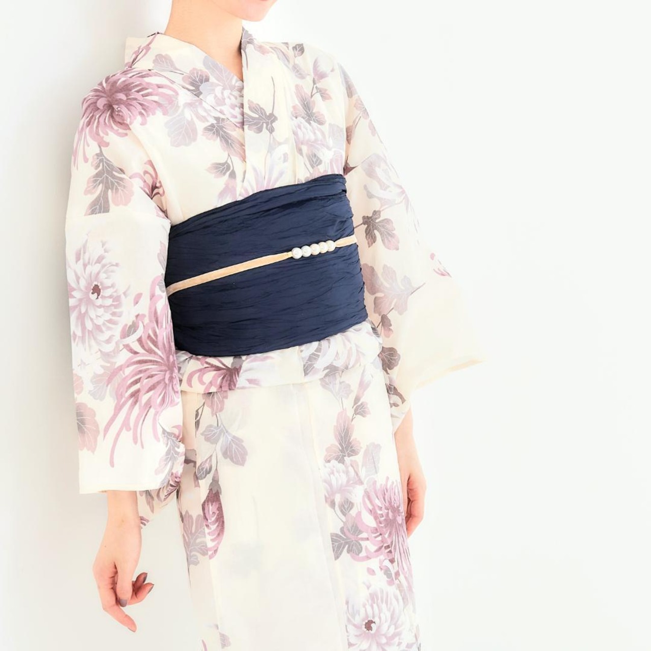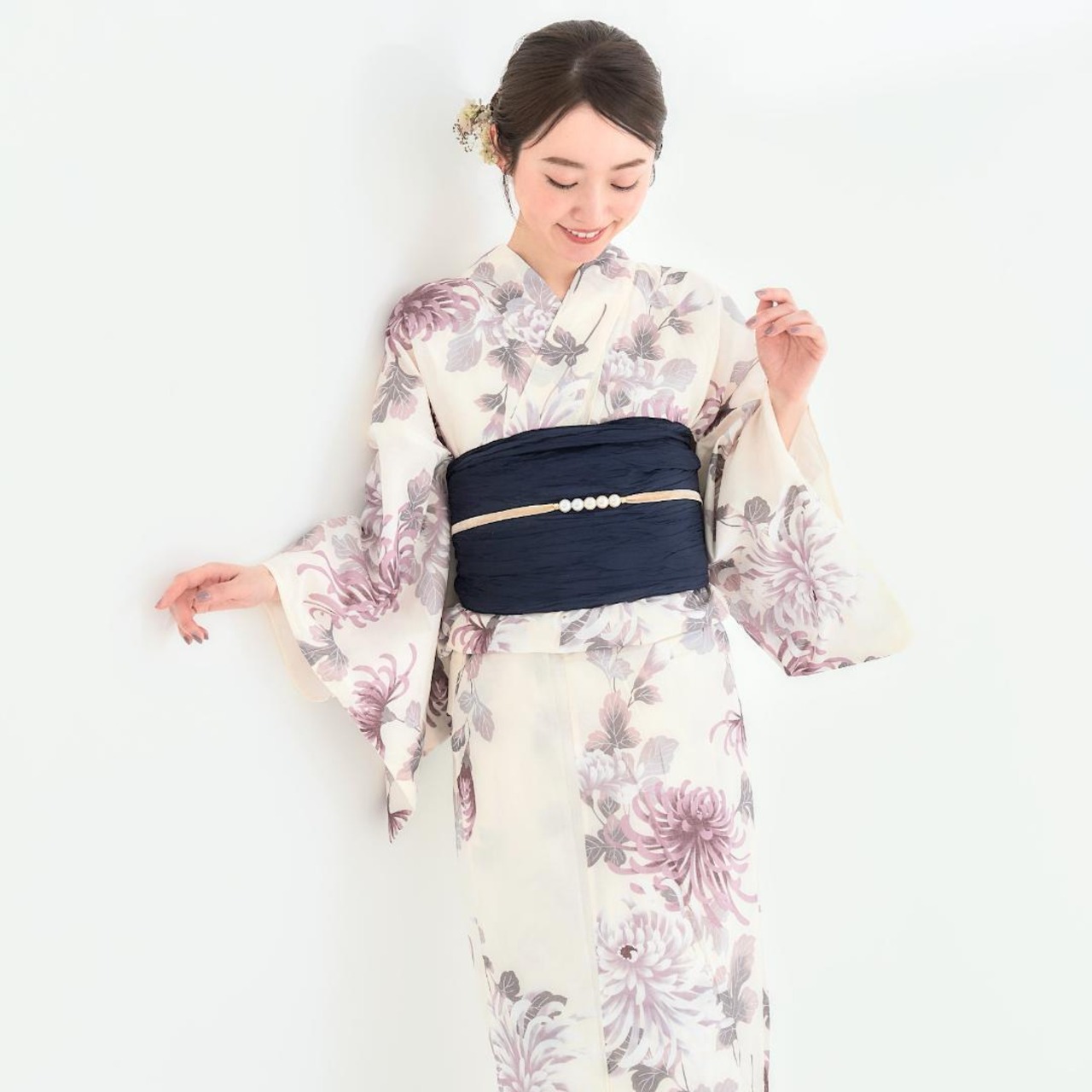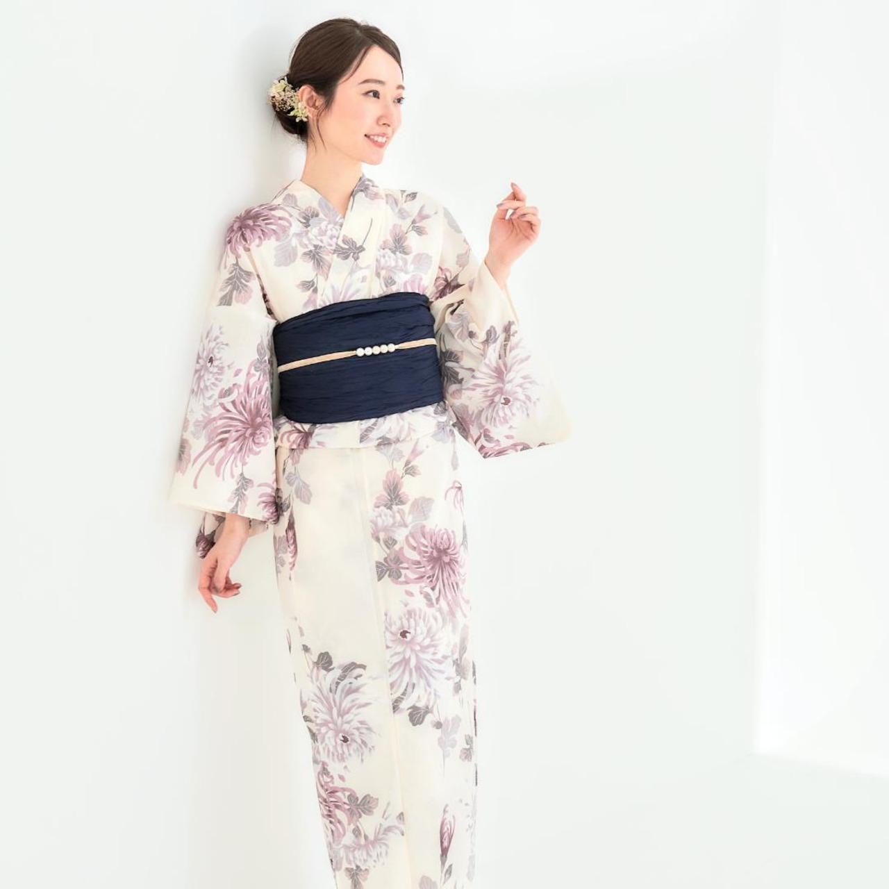 【2点セット】浴衣 兵児帯付き レディース 白 生成り 菊 wy42