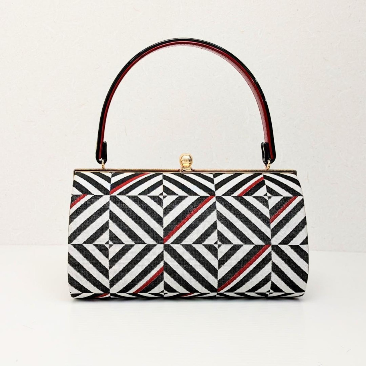和装 草履バッグセット 帯地 幾何学 黒×白×赤 フリーサイズ k14-2