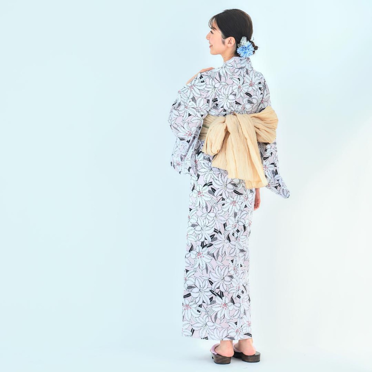 【浴衣単品】浴衣 レディース 薄いピンク 百合 wy3